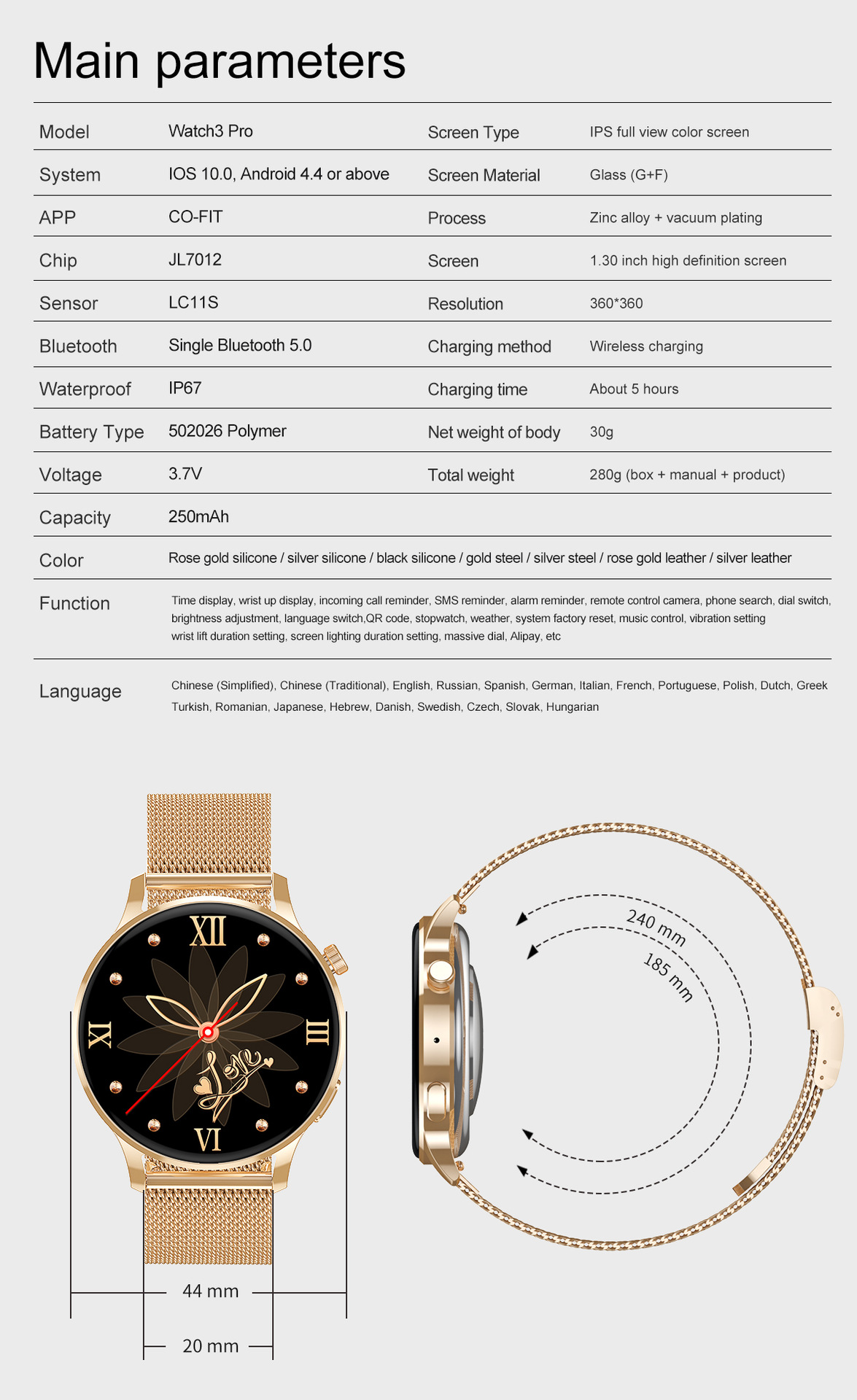 跨境新款智能手表Watch3 PRO蓝牙通话心率离线支付源头工厂现货