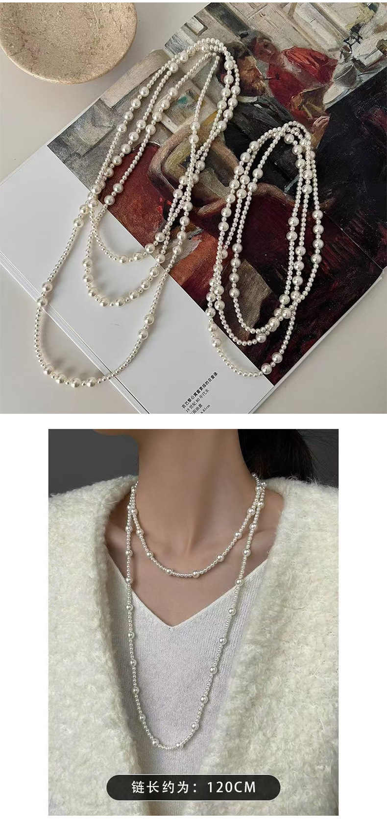 高级感毛衣链长款多层叠戴百搭珍珠项链赫本风气质百搭女颈链饰品