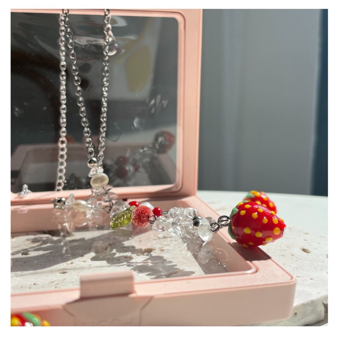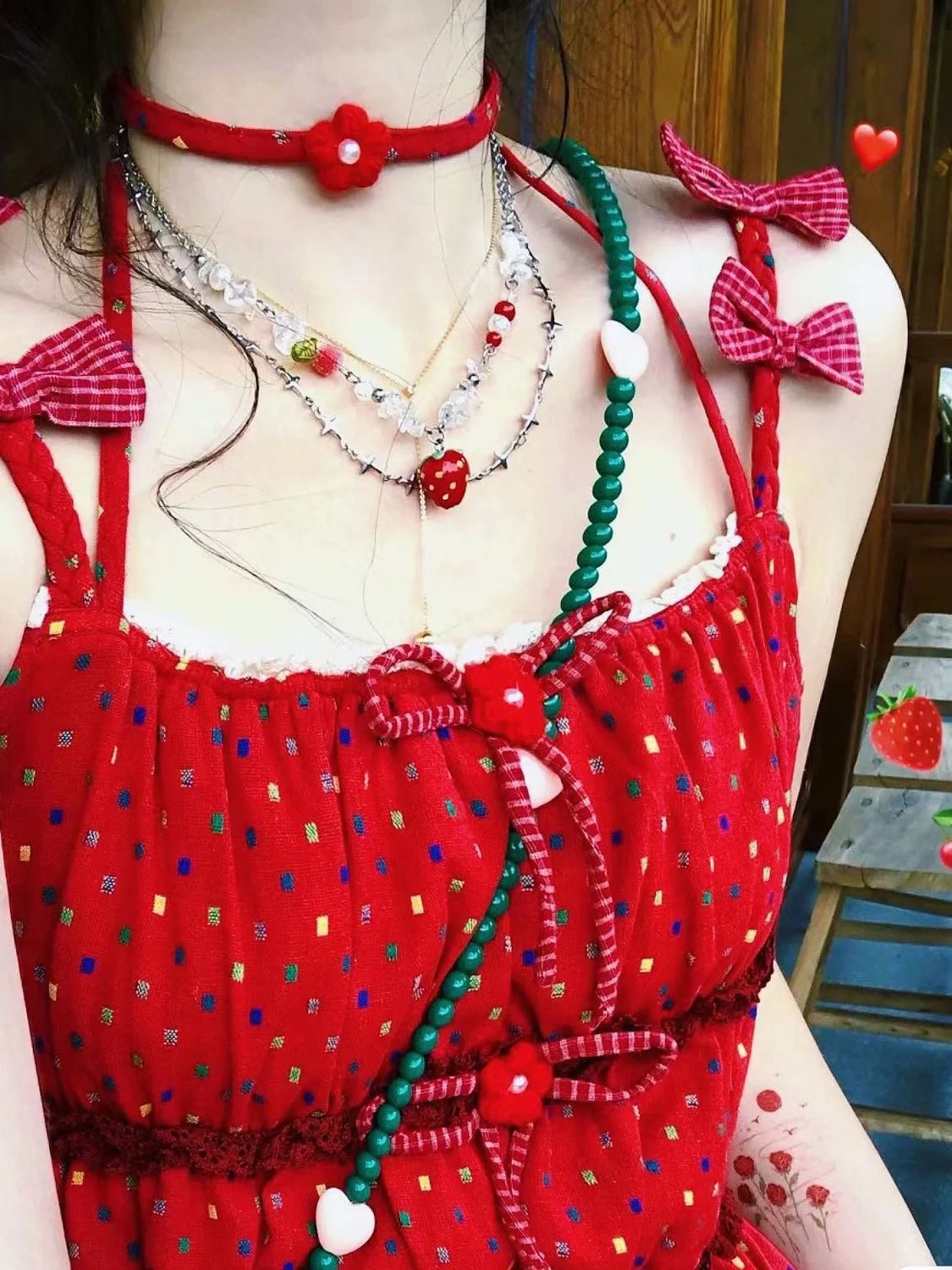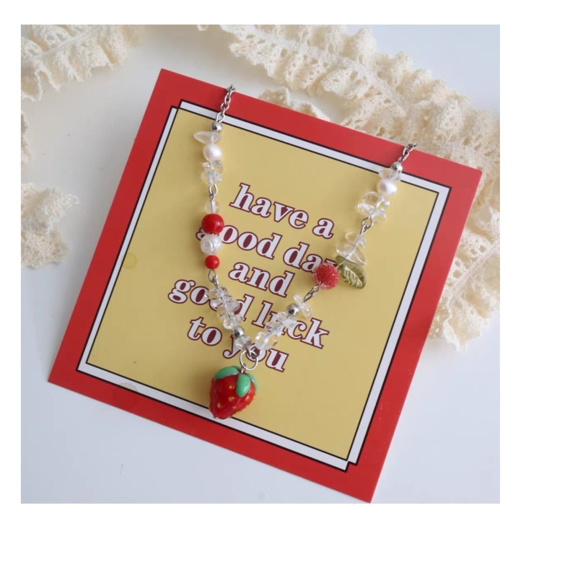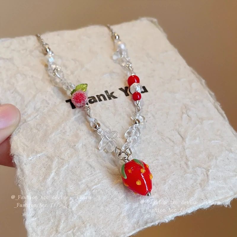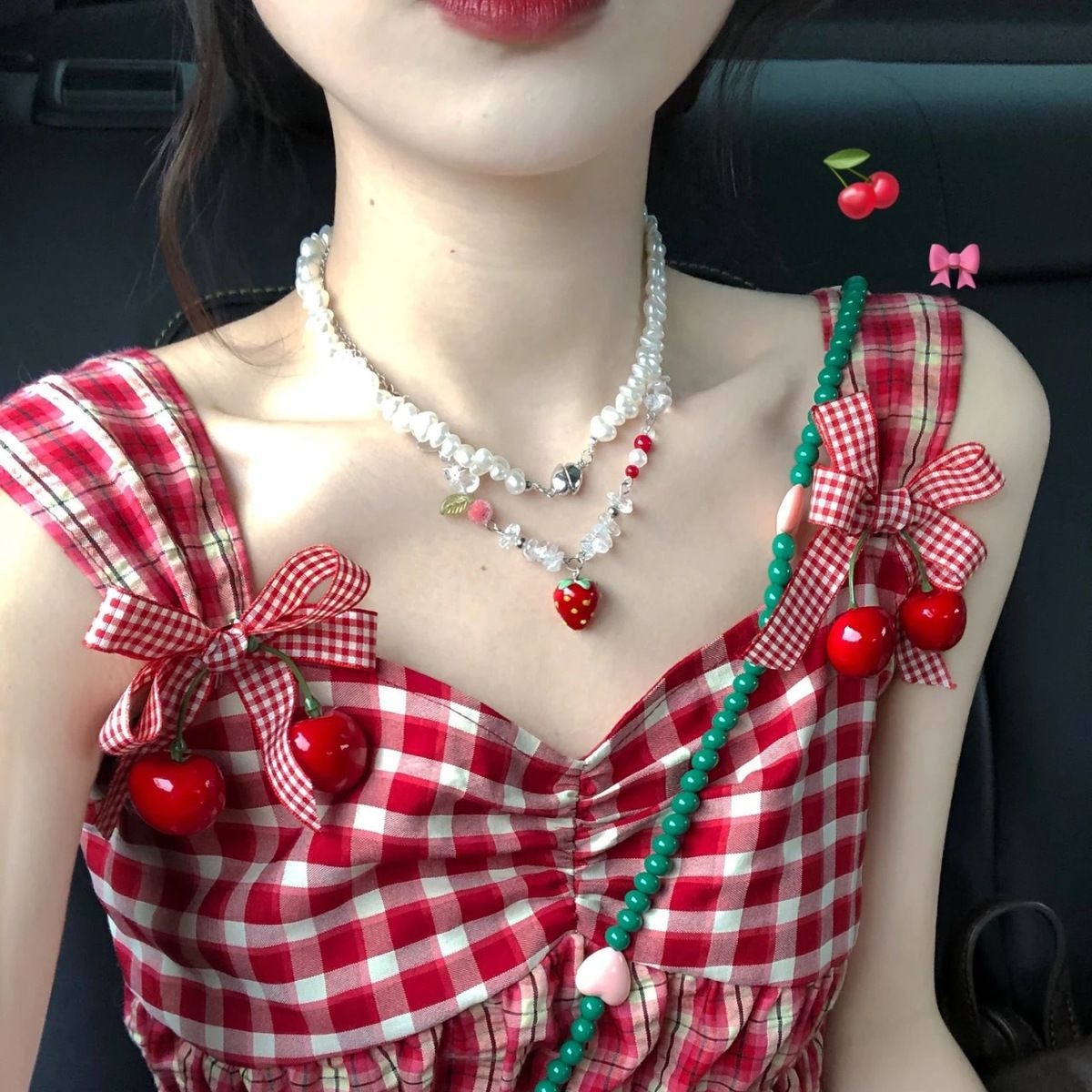 2024年!巨显白草莓吊坠原创手工串珠项链春夏可爱日常y2k女G