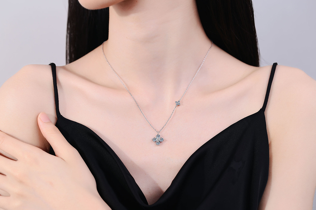 s925纯银项链莫桑钻吊坠 高级感四叶草锁骨链1.2克拉莫桑石项链女