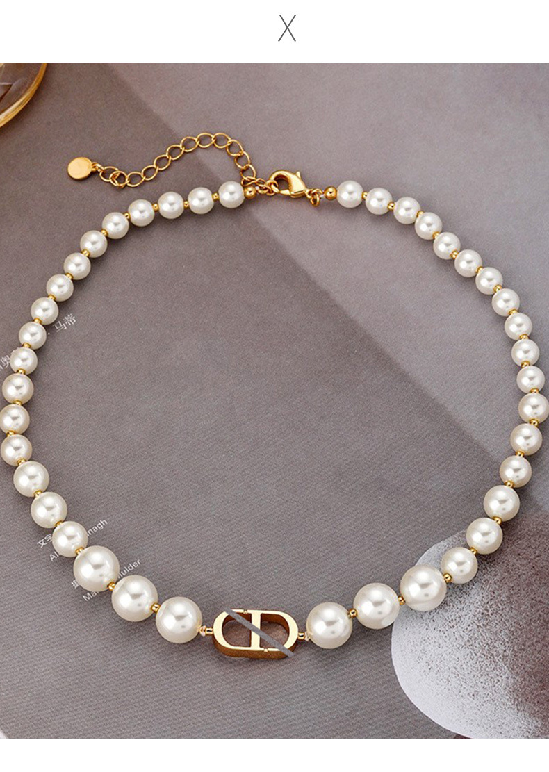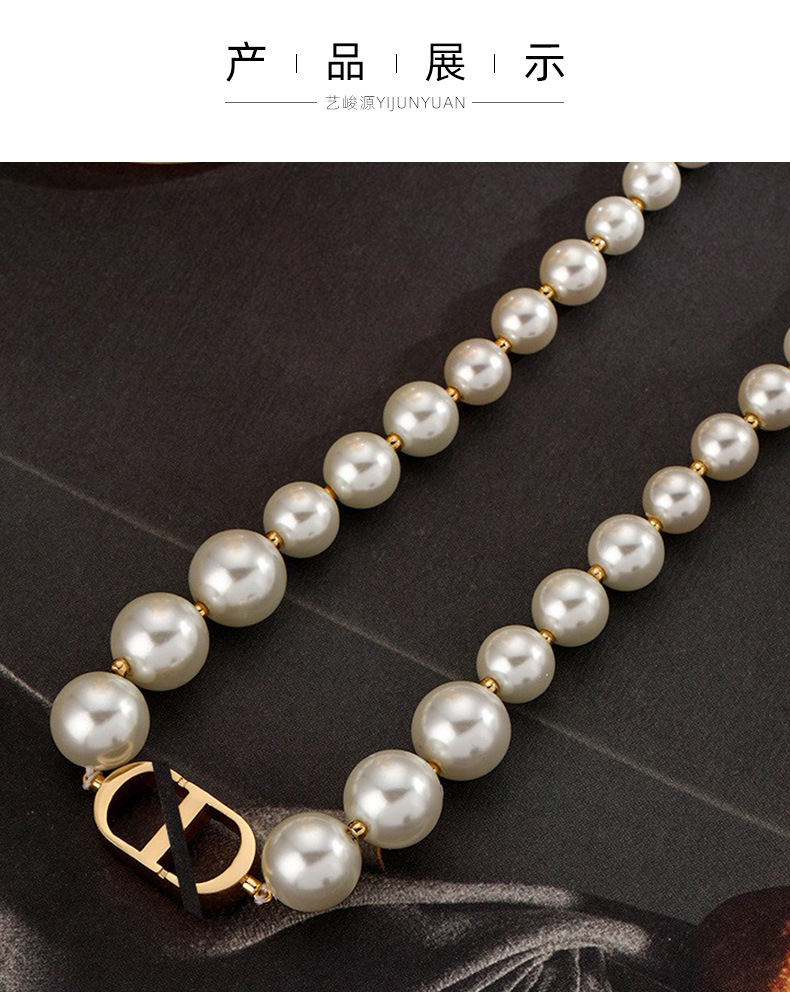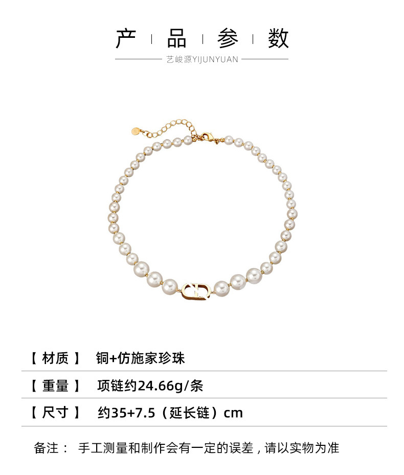 欧美D家字母CD渐变珍珠项链女轻奢小众时尚复古高级感气质锁骨链