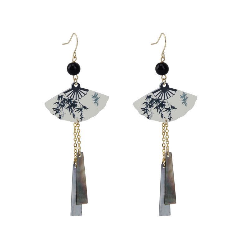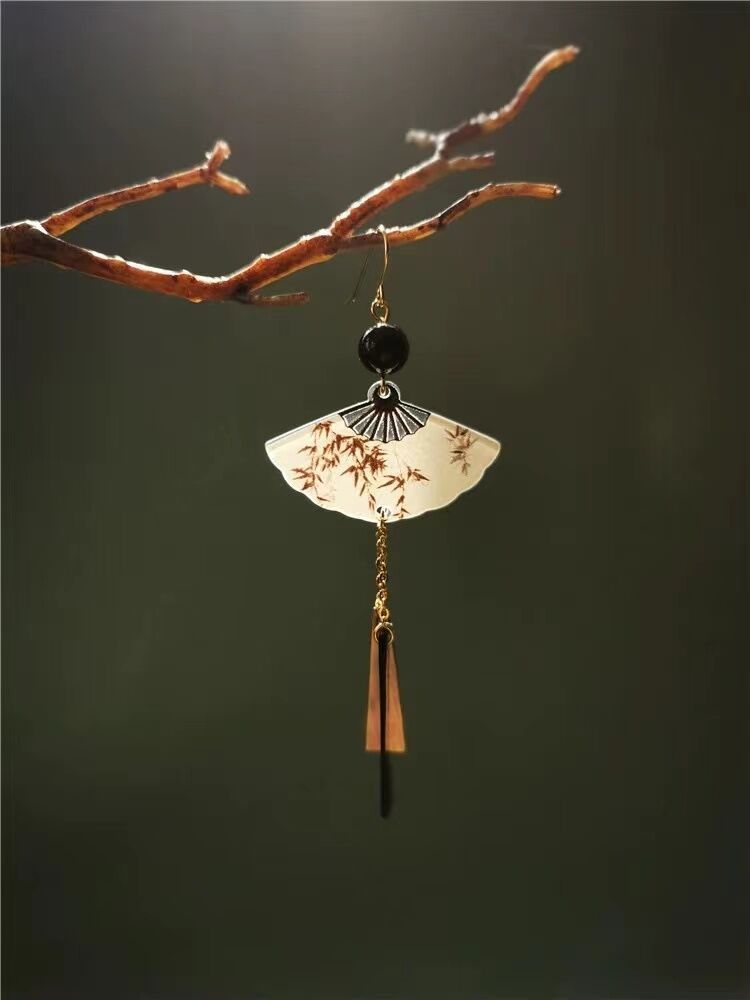 新中式复古国风扇形流苏耳环气质耳坠新款高级感个性气质耳饰