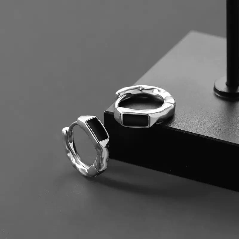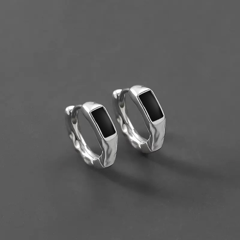日韩925银耳钉耳环男朋克风个性潮流设计感黑色锆石几何耳饰耳扣