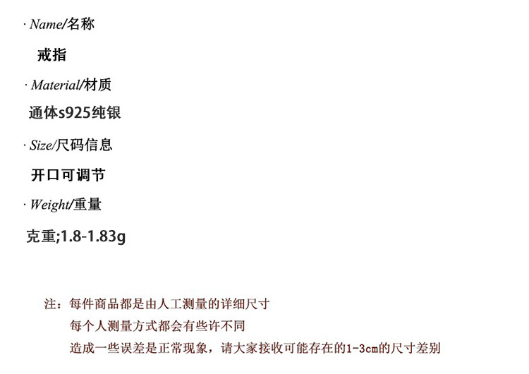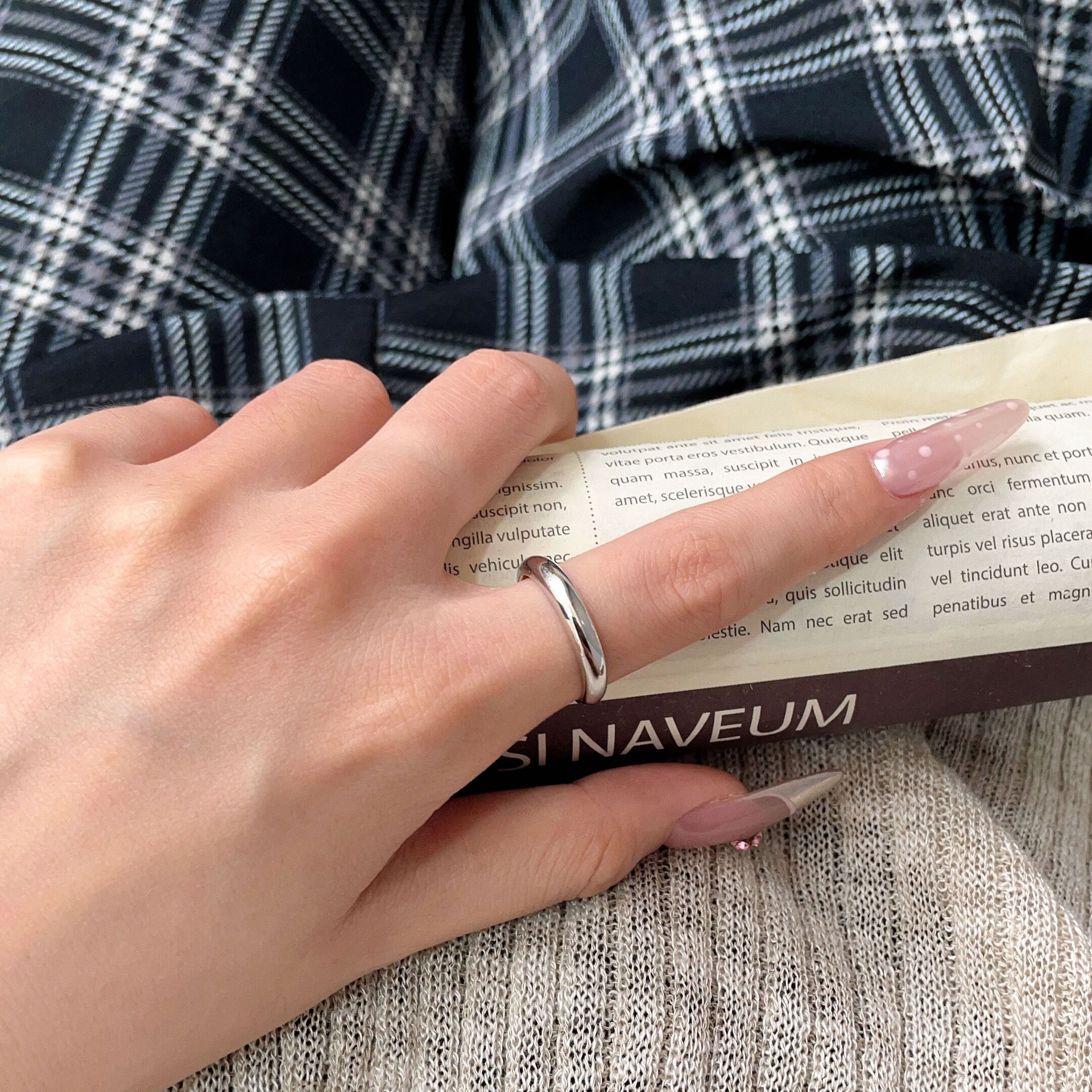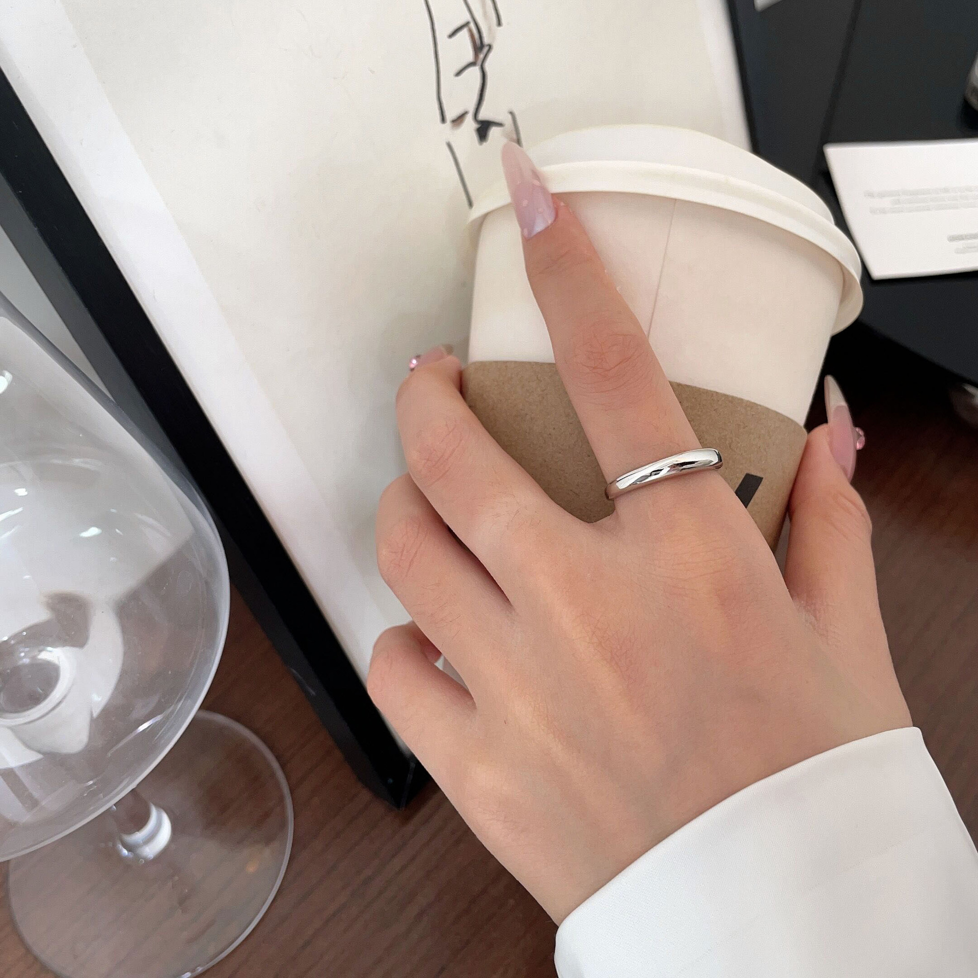 银瑞泰s925纯银素圈细款开口戒指女冷淡风光面个性手饰送闺蜜