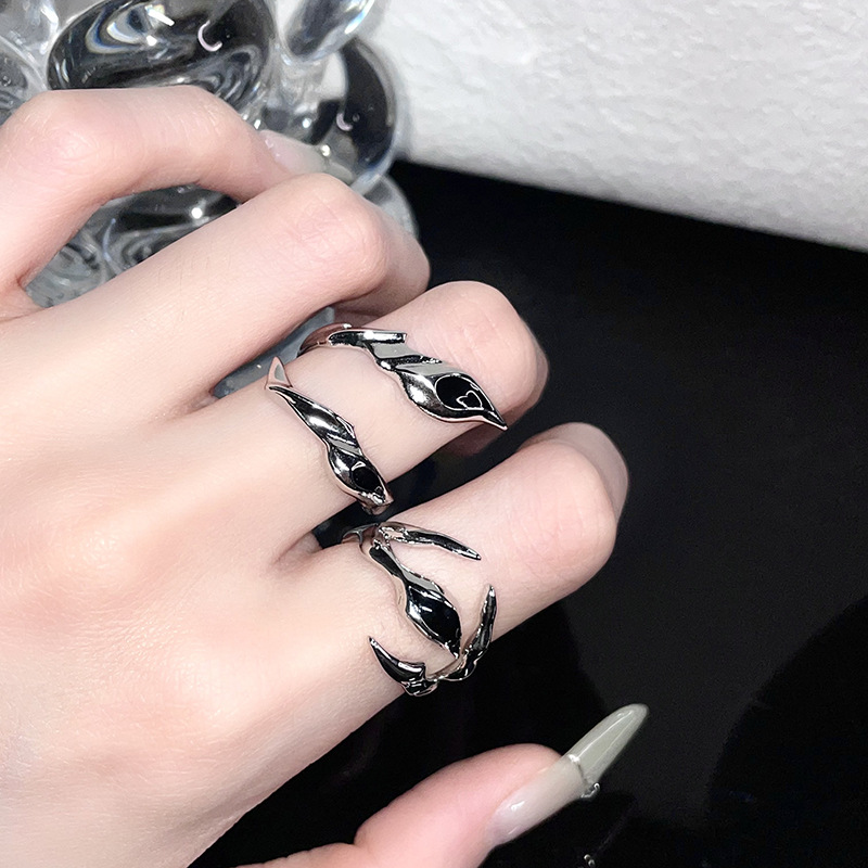原创设计跨境小众ins冷淡风高级感个性复古暗黑开口情侣戒指食指