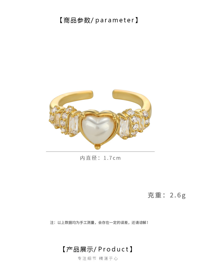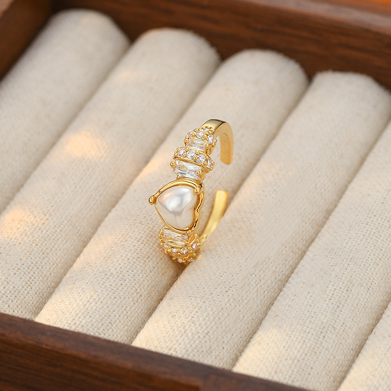 韩国时尚设计感个性开口戒指女2024年新款爱心指环精致珍珠食指戒