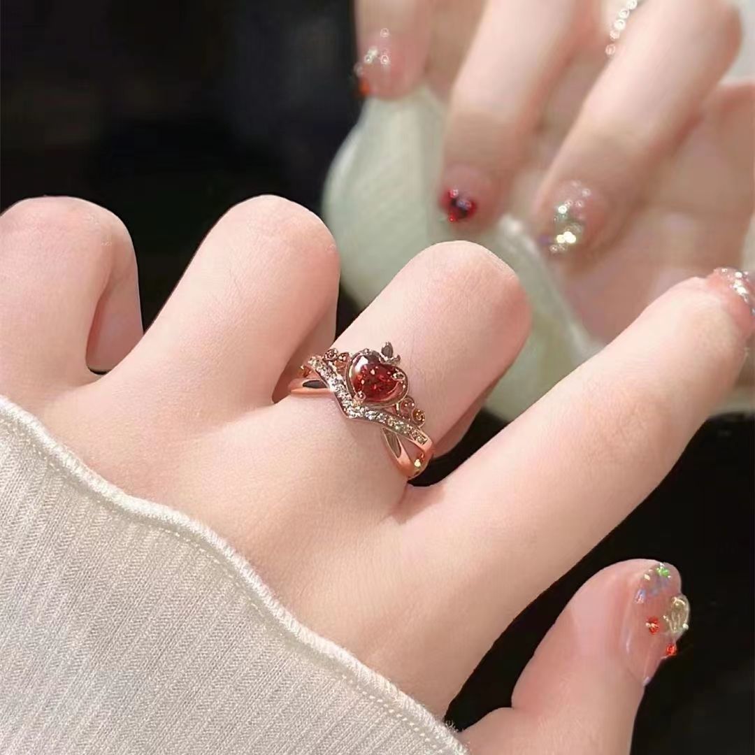 韩国新款瑰色之梦戒指女复古精致感戒指女轻奢气质镶嵌款开口指环