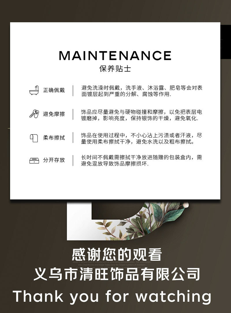 本厂专业饰品批发,产品批量生产,基本上手工加工,不同批次产品可能会有细微差异,微小瑕疵(不影响销售)无法避免,建议先拿样看货,大家都应该明白一分钱一分货的道理,不要凭自己的想像,每个人的想像都是无限大,这个我们满足不了,请见谅!对于质量非常苛刻的客户,请到专柜购买!