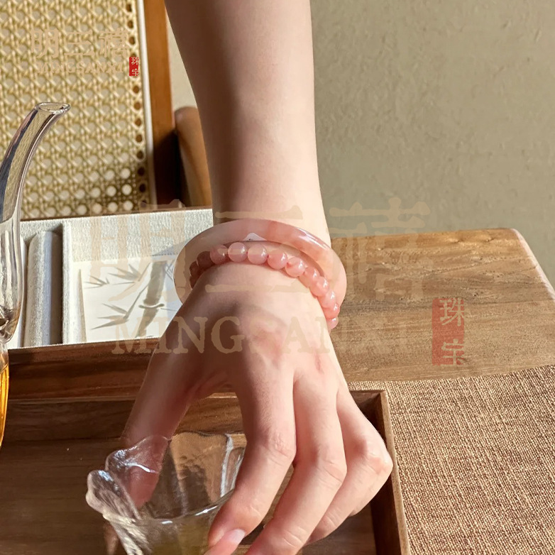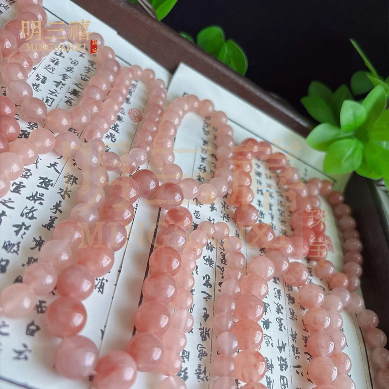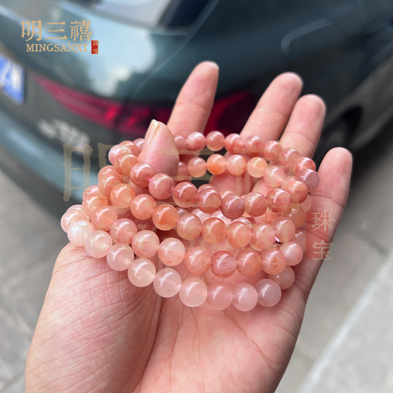 批发天然粉色金丝玉单圈圆珠手链桃花酿串珠饰品简约设计直播货源
