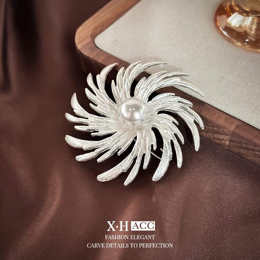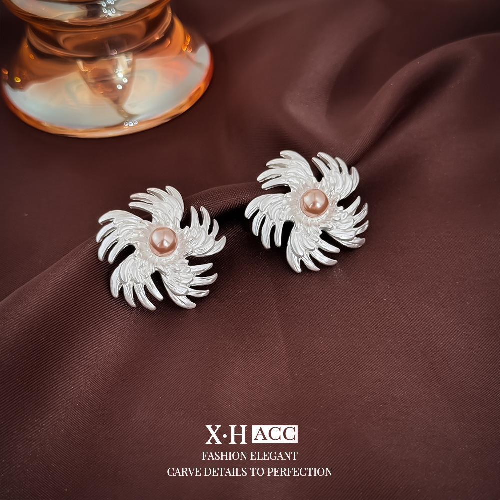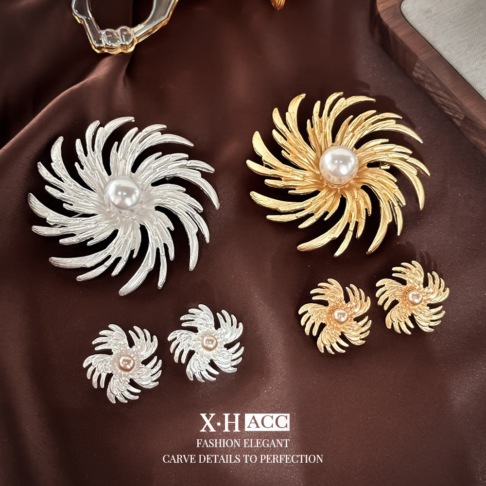 法式轻奢高级感花朵珍珠耳环小众个性气质金属别针冷淡风胸针套装