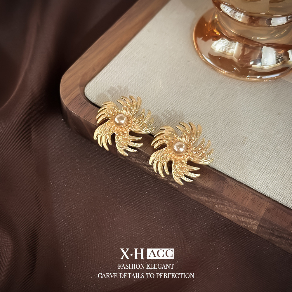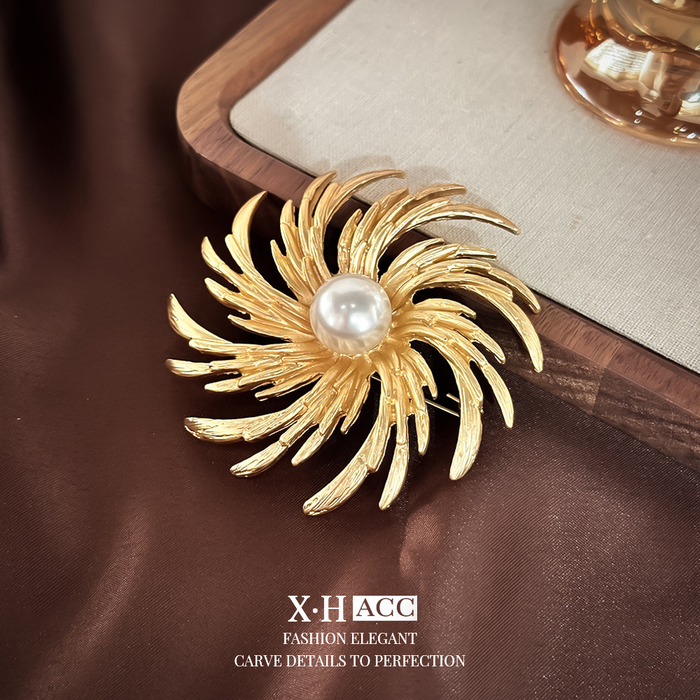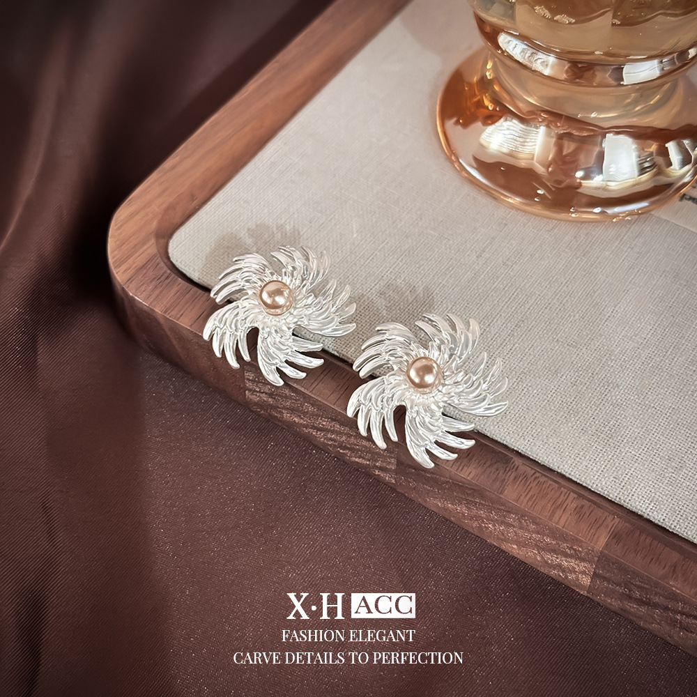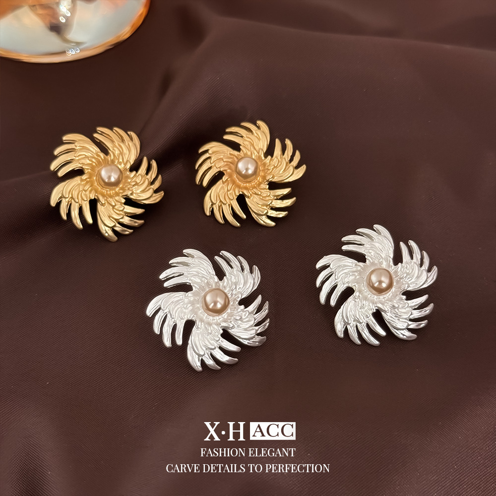 法式轻奢高级感花朵珍珠耳环小众个性气质金属别针冷淡风胸针套装