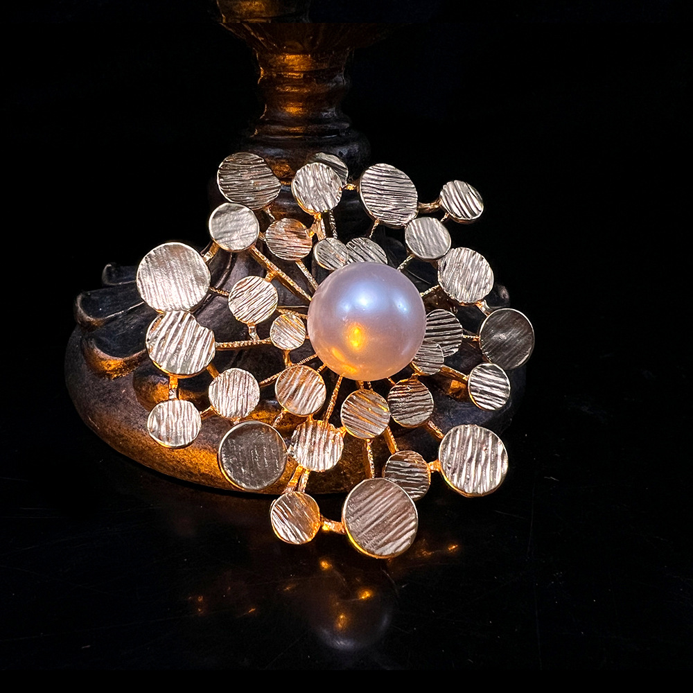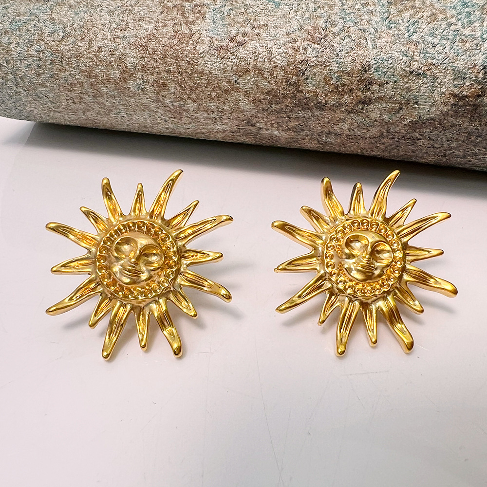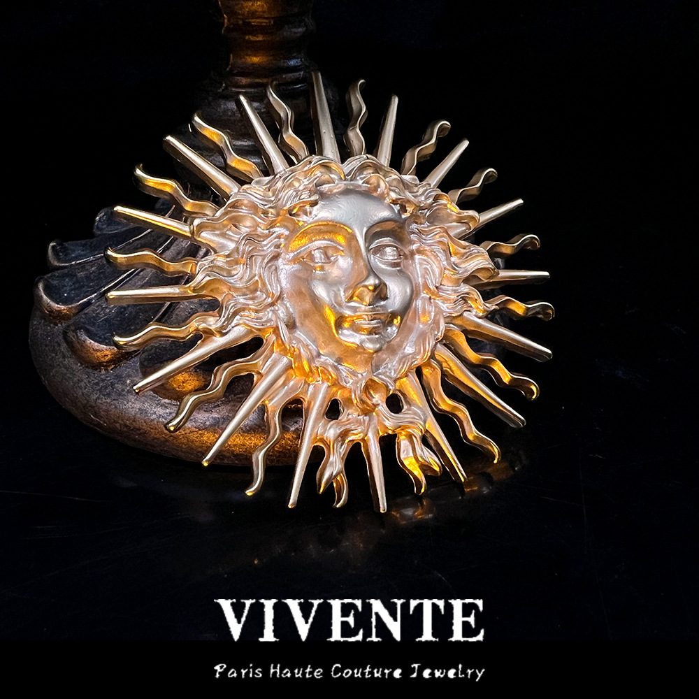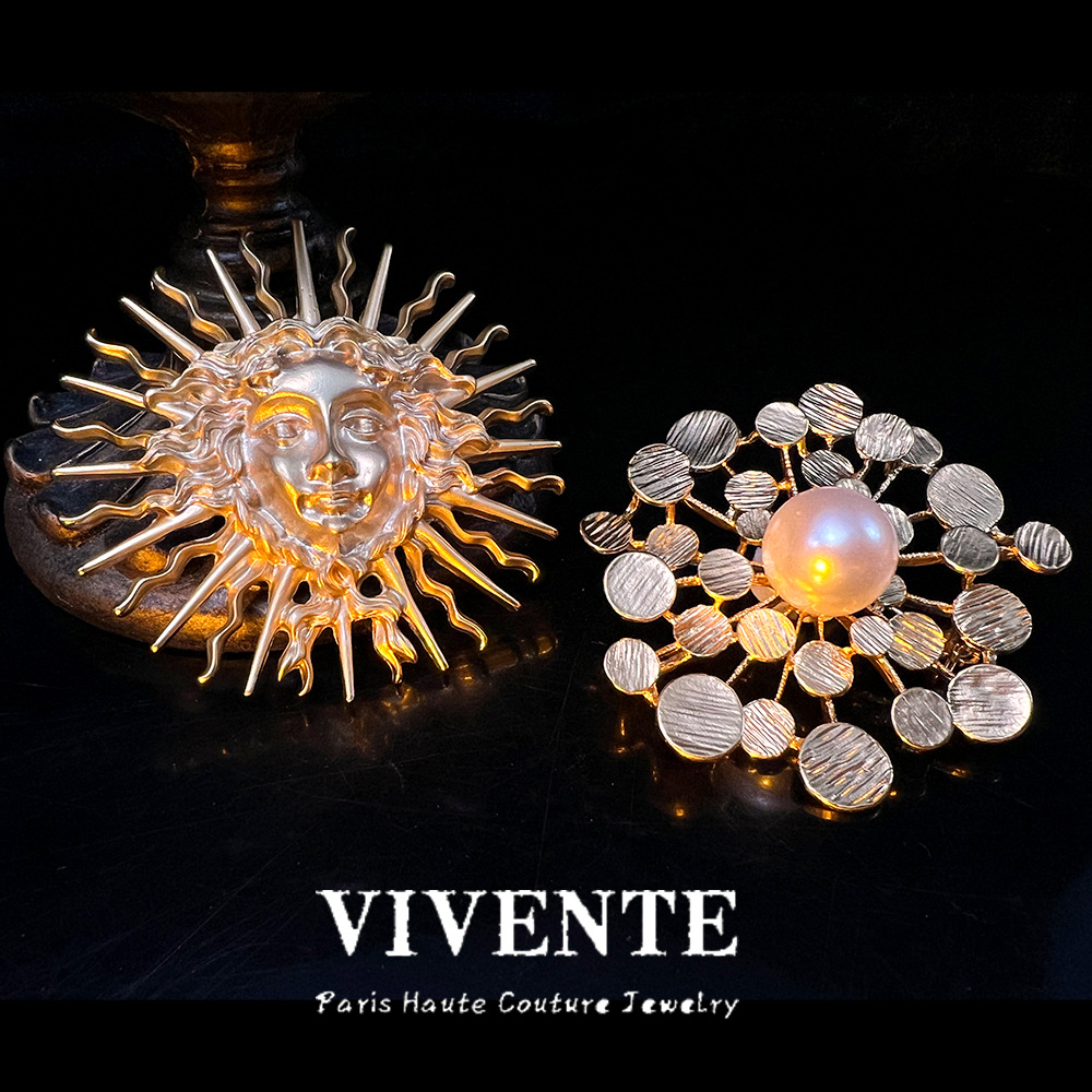 太阳神满天星外贸素金简约胸针 vintage中古风欧美夸张高级胸针别