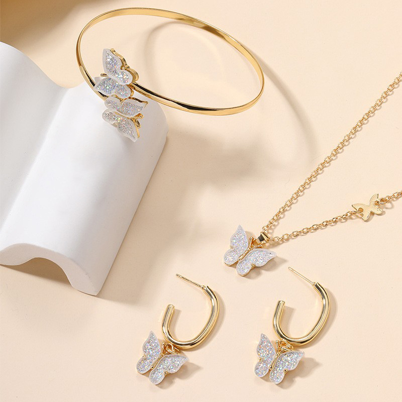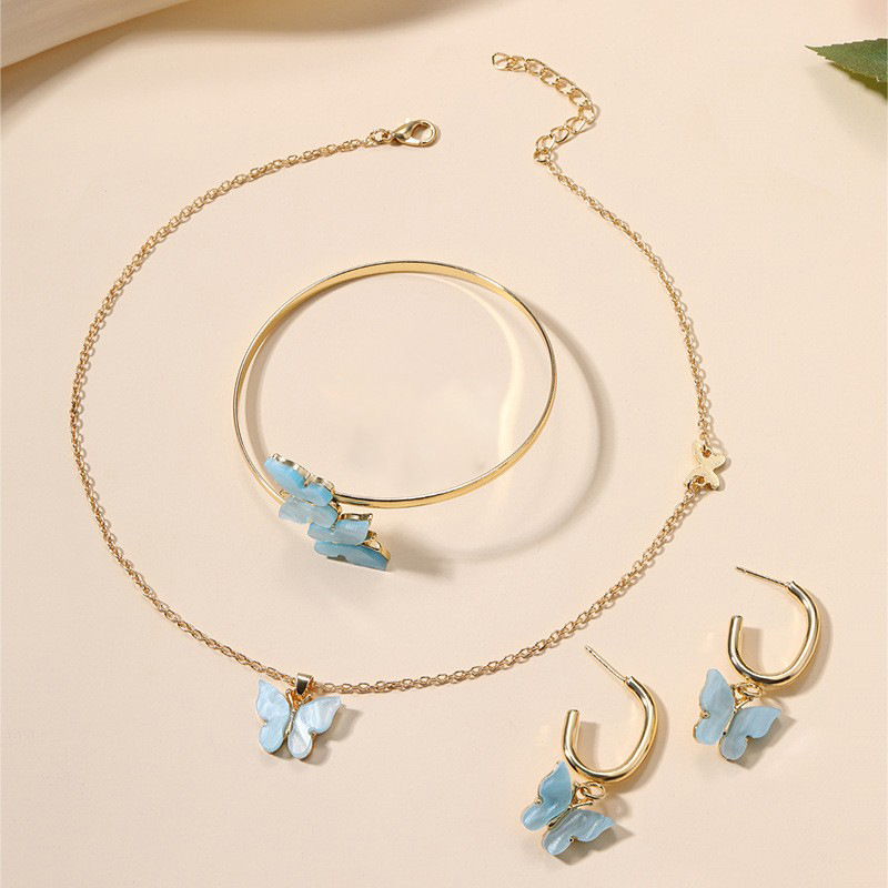 合金蝴蝶首饰批发欧美跨境饰品耳环手镯项链小众高级感吊坠套装女