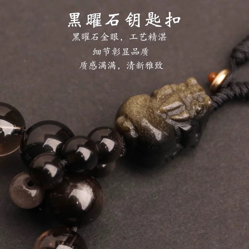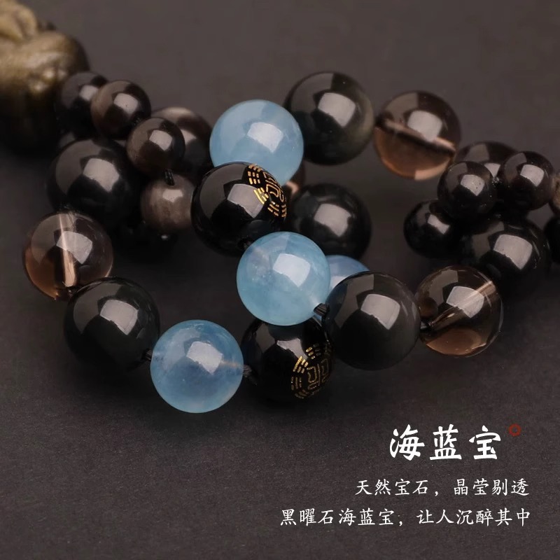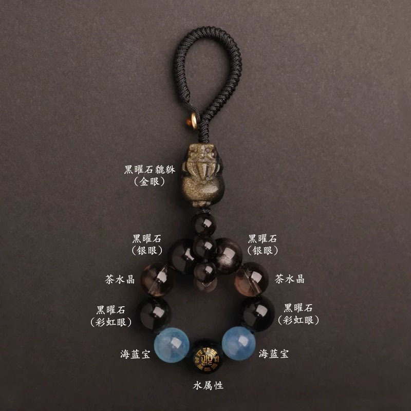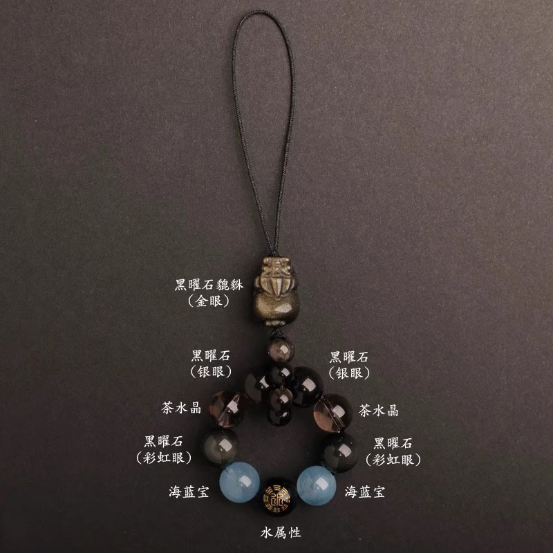 吉绳记五行平衡水手机挂饰茶水晶貔貅配饰礼物海蓝宝串珠钥匙挂件