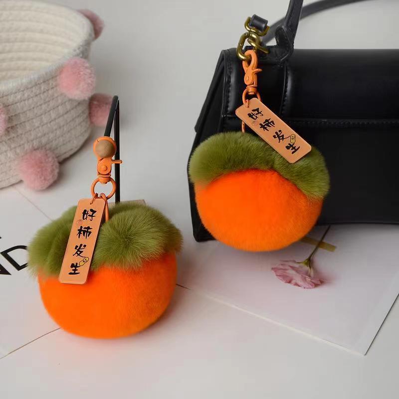新款创意可爱小柿子挂件毛绒玩具钥匙配件汽车钥匙扣女士包包挂件