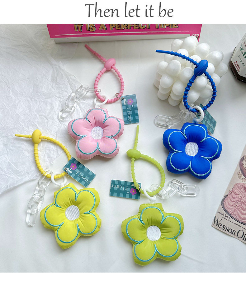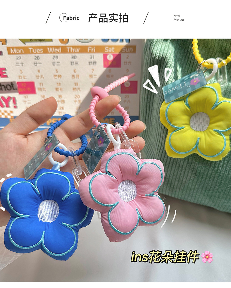 潮流精致布艺小花钥匙扣挂件可爱拼色花朵女生汽车钥匙链包包挂件