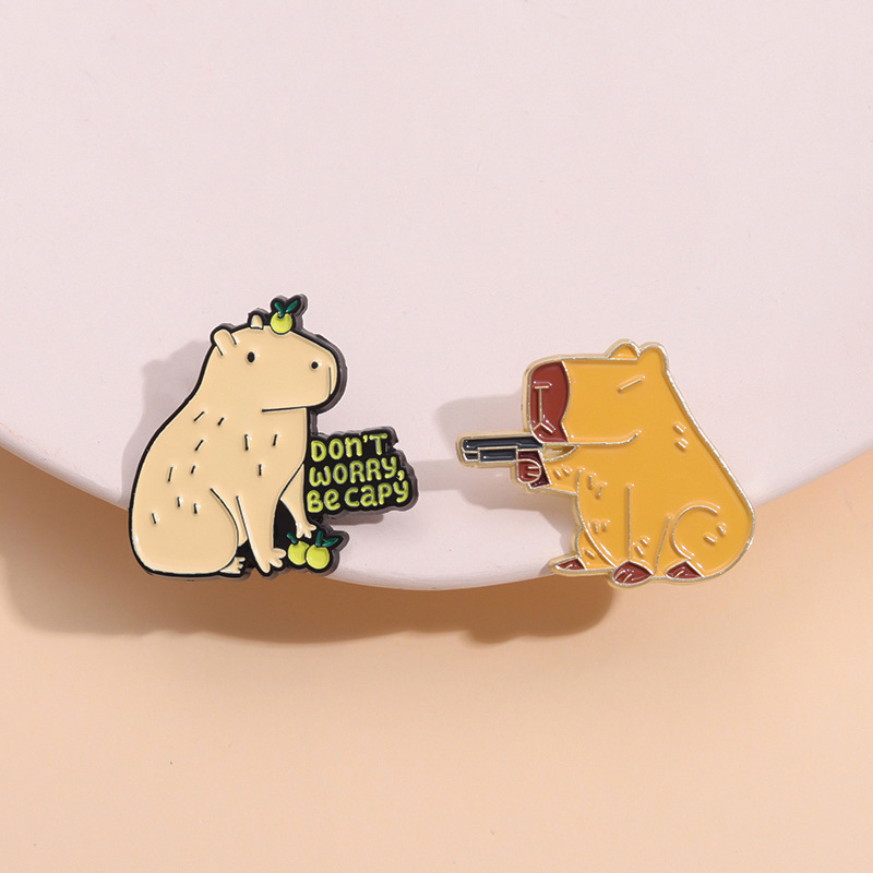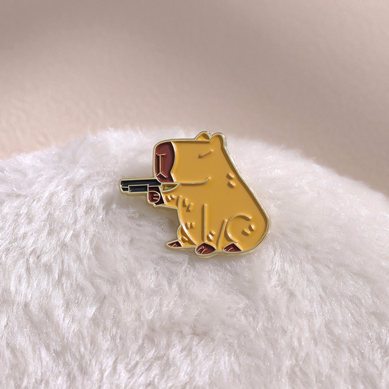 卡通动漫周边小动物徽章水豚举枪造型设计感服装包包配饰合金胸针