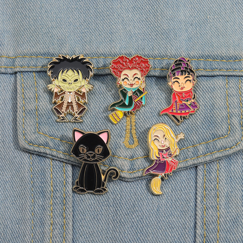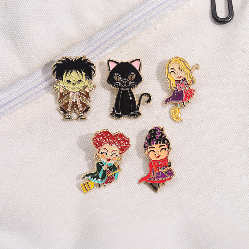 卡通趣味猫咪骑扫帚小人金属徽章影视动漫二次元人物周边百搭胸针