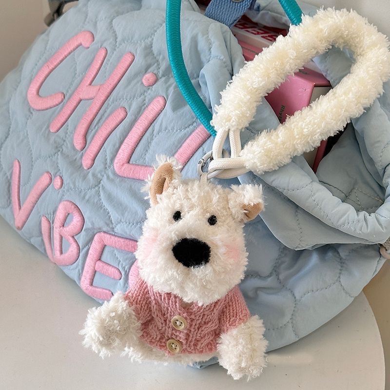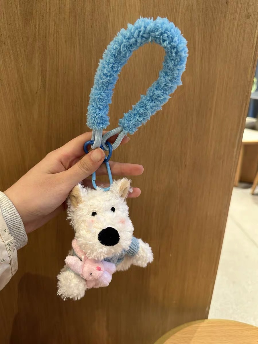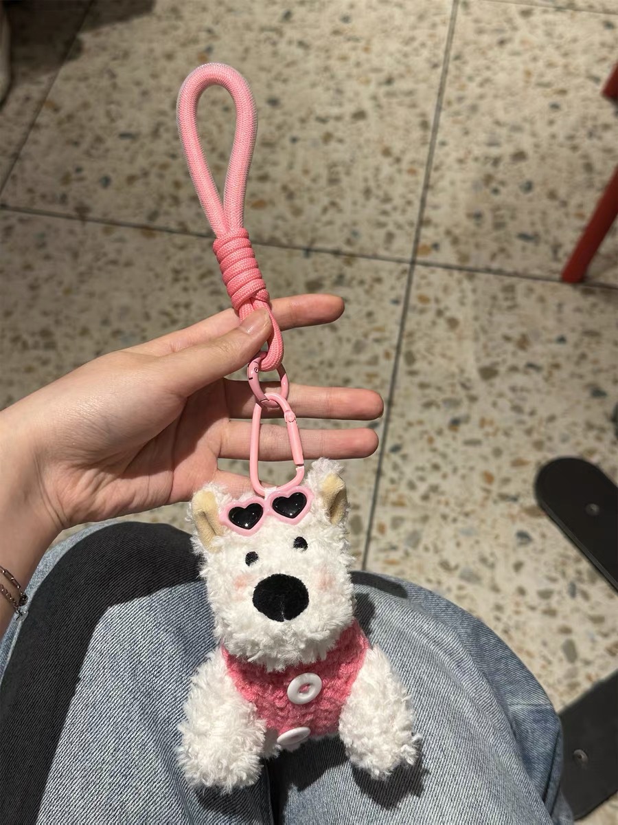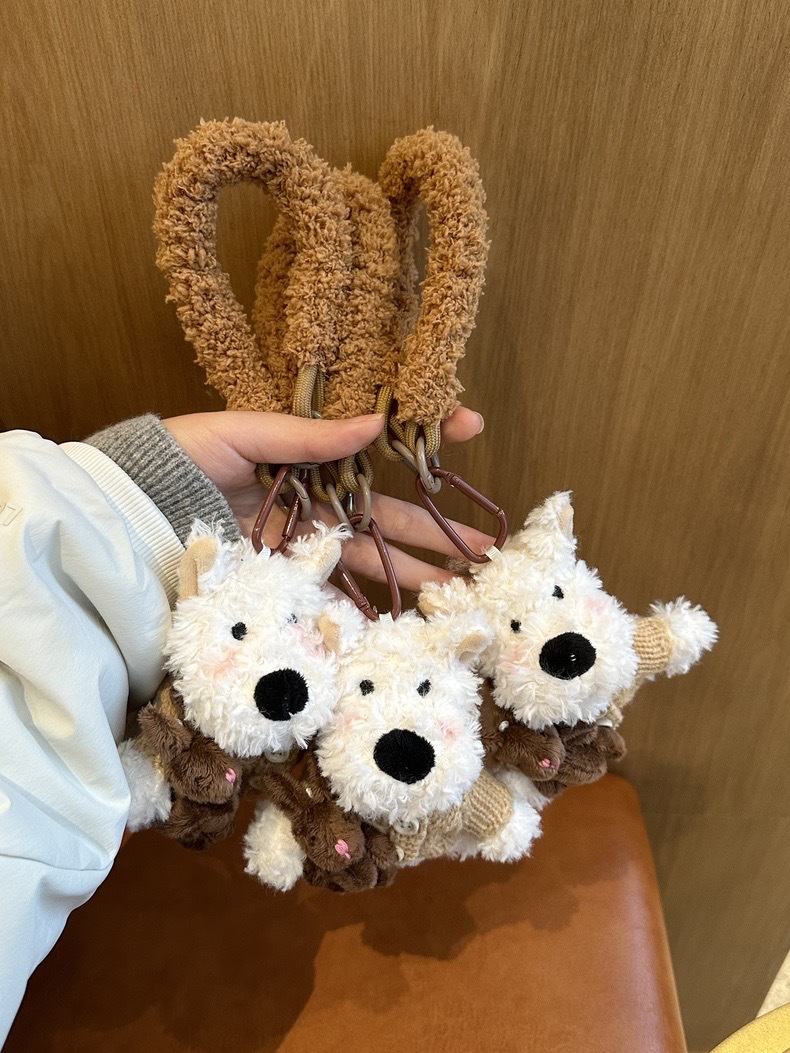 可爱西高地包包挂件车载摆件防丢卡通潦草狗毛绒钥匙绳扣装饰批发