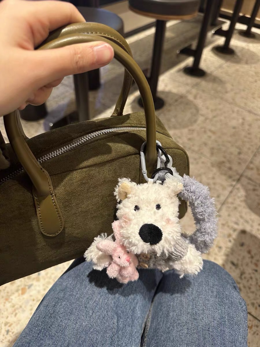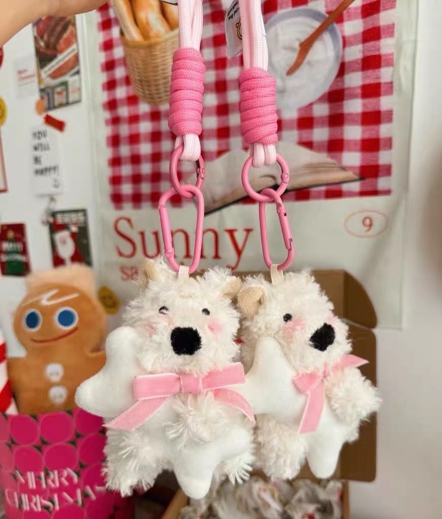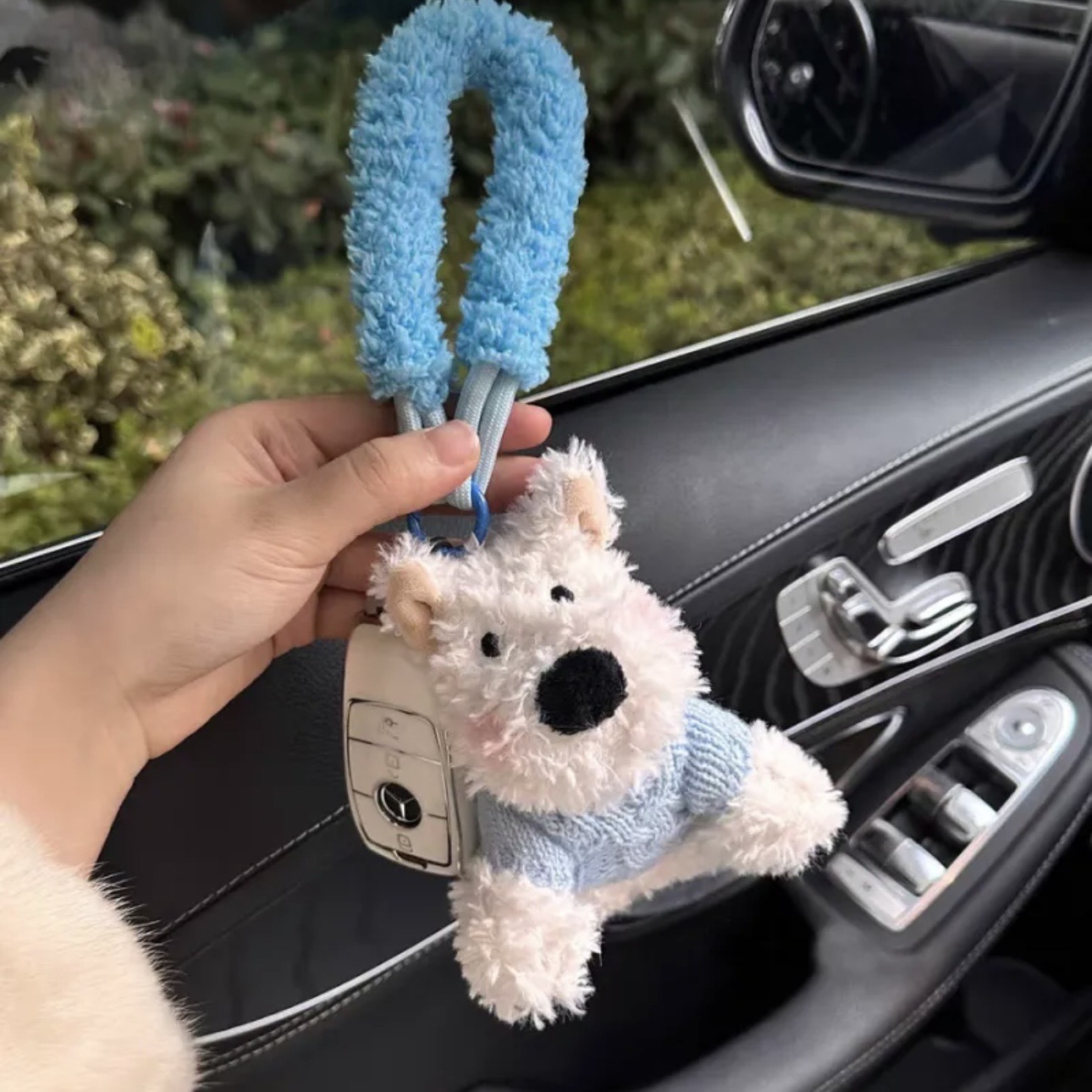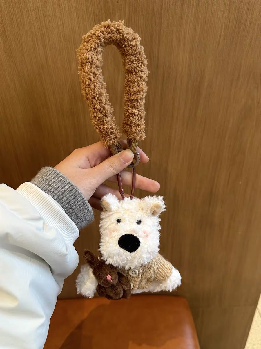 可爱西高地包包挂件车载摆件防丢卡通潦草狗毛绒钥匙绳扣装饰批发