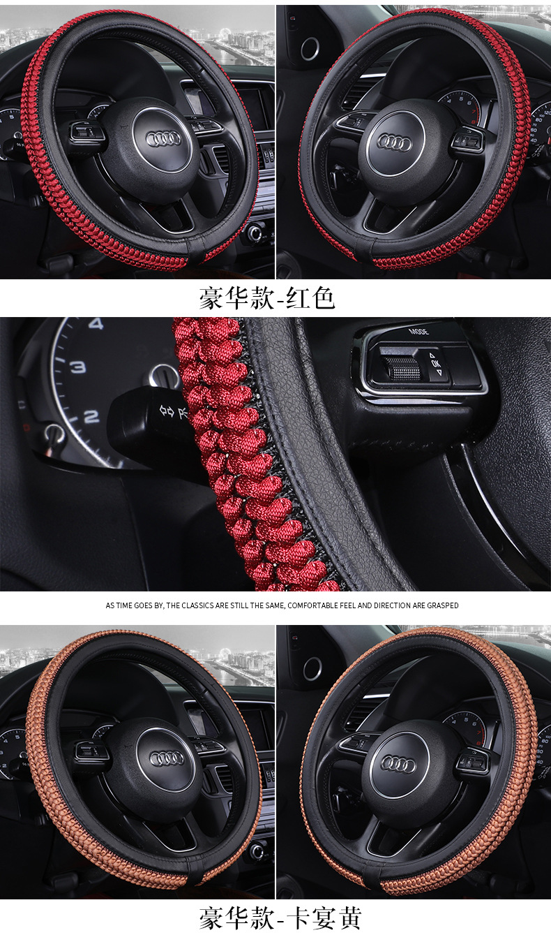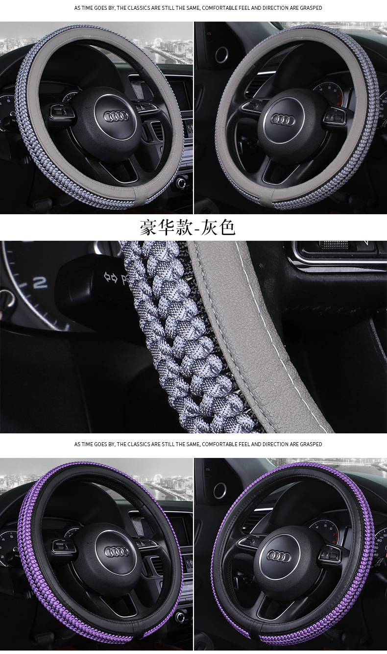新款热销通用方向盘套编织手感好冰丝汽车汽车把四季耐磨吸汗代发