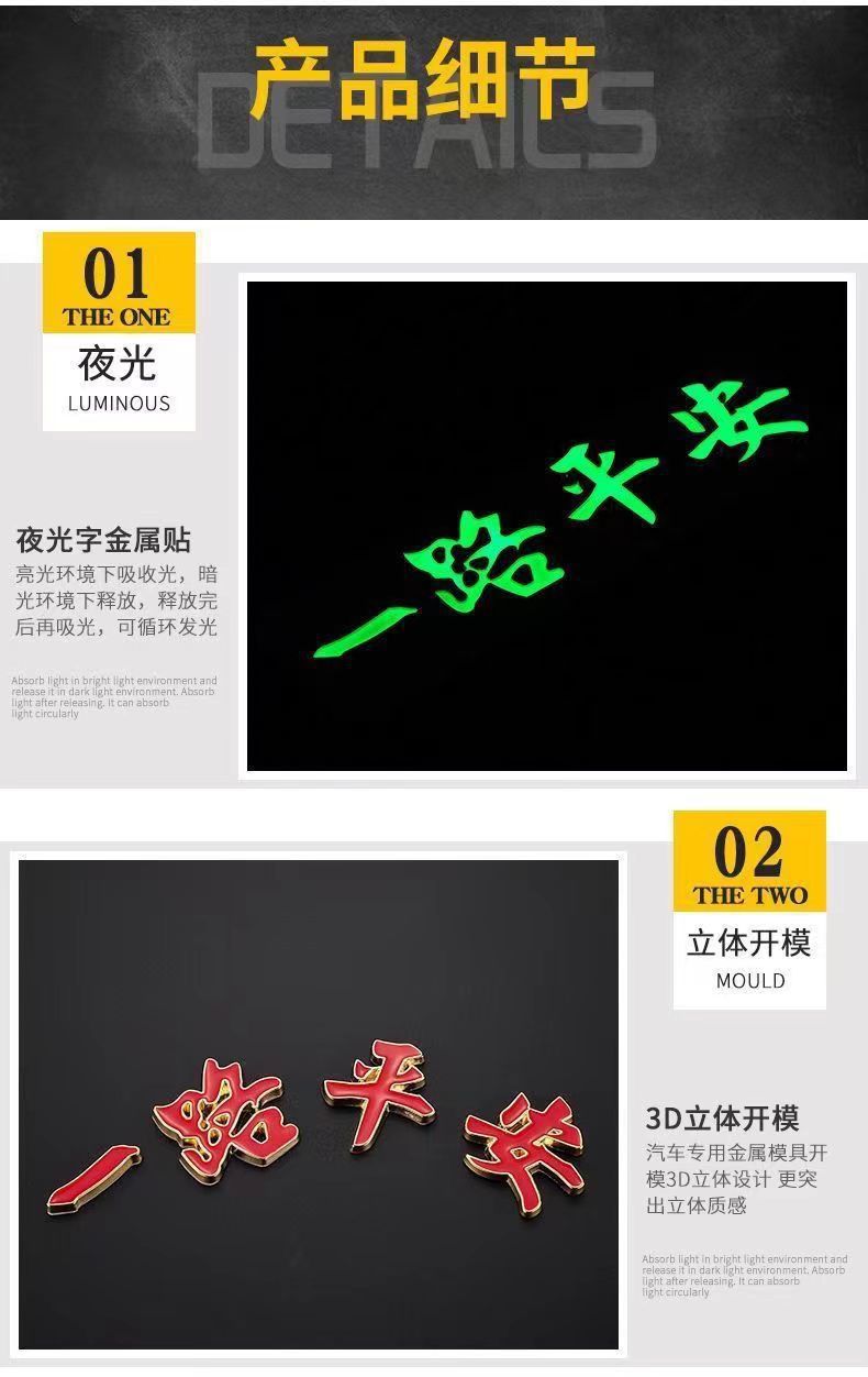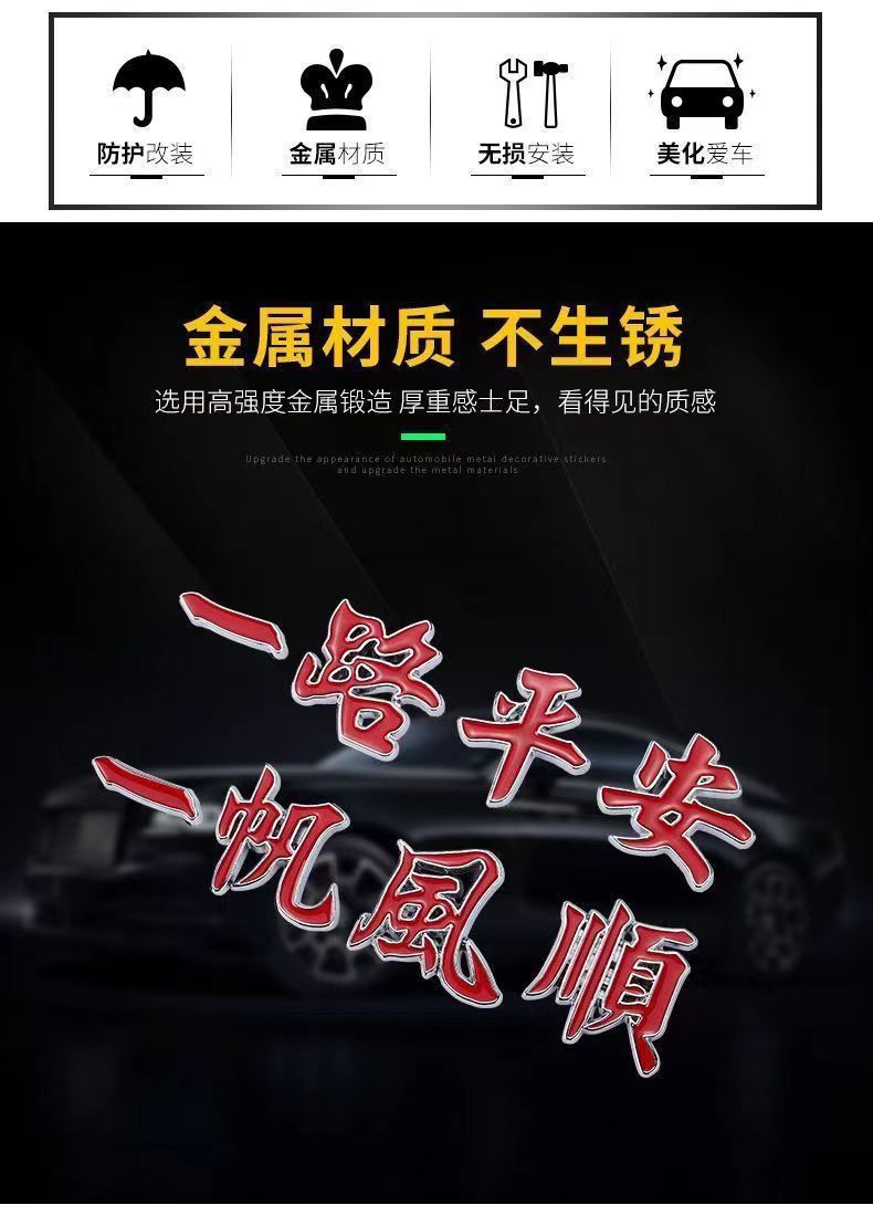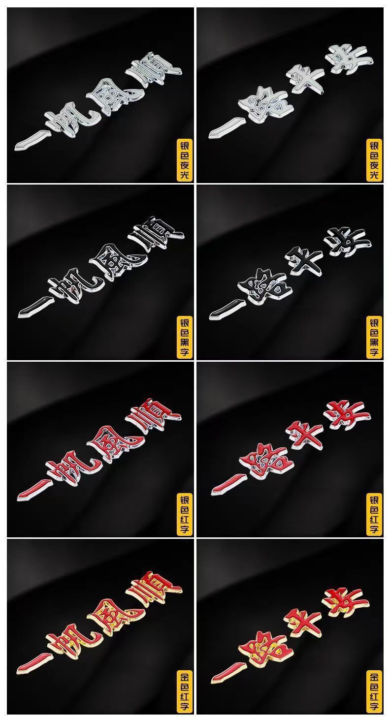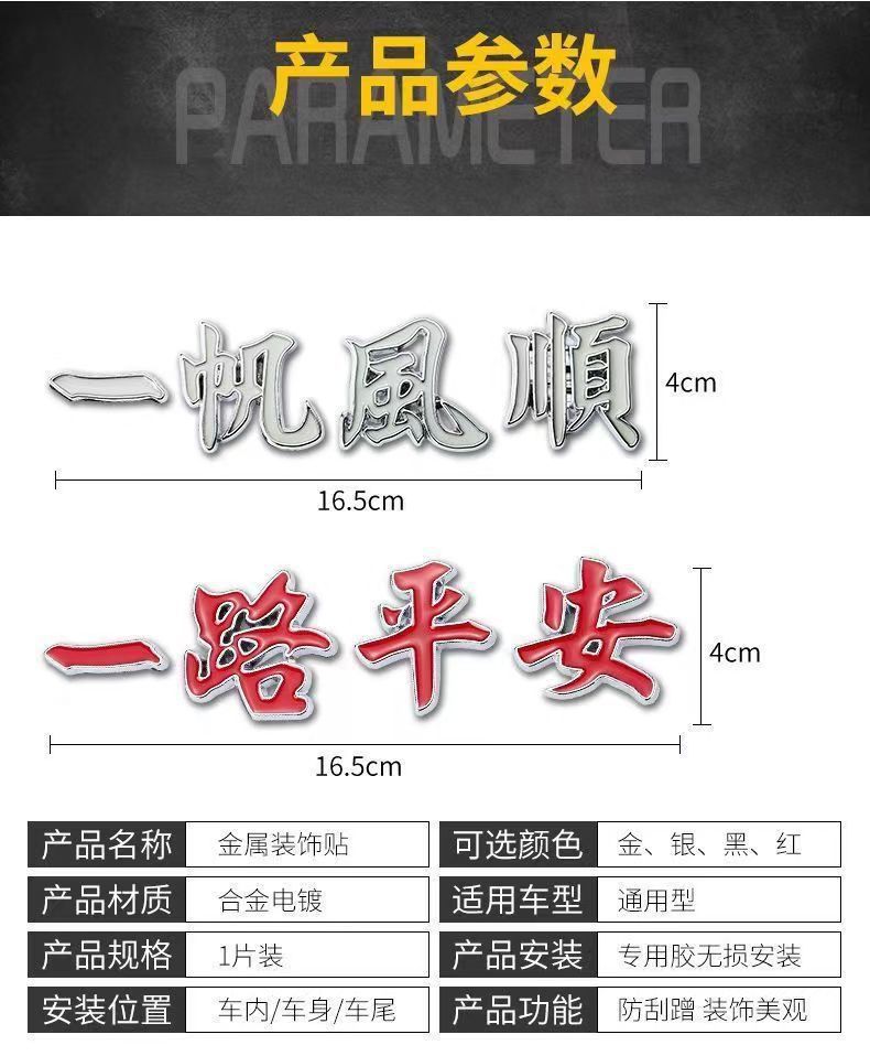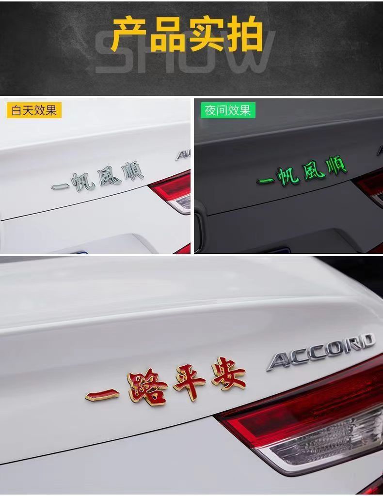 汽车金属车标一路平安一帆风顺祝福夜光车贴金属车身贴尾标装饰贴