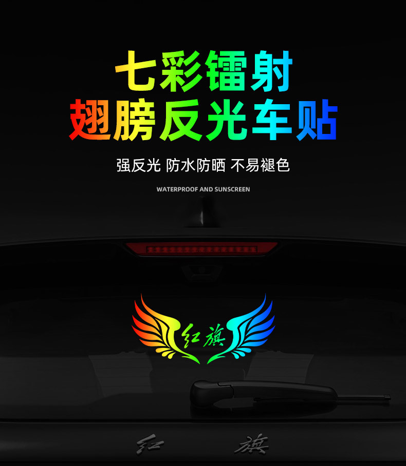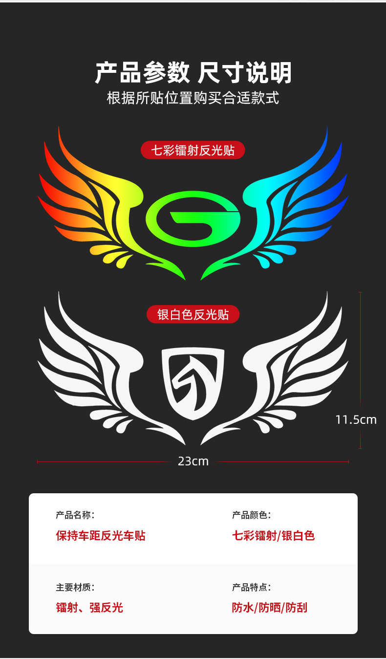 2025新款车标翅膀车贴车身划痕遮挡汽车强反光装饰贴电动摩托贴纸