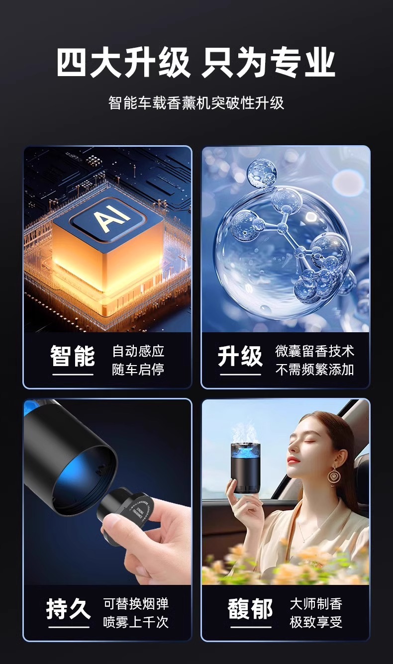 跨境车载云雾香薰2024新款持久留香车内香水男女士高级香氛摆件