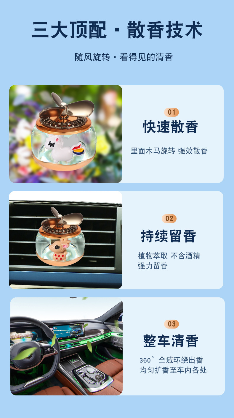 爆款扇叶车载香薰 汽车出风口香水旋转香薰车内香氛摆件车内持久