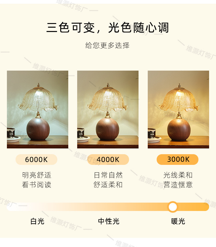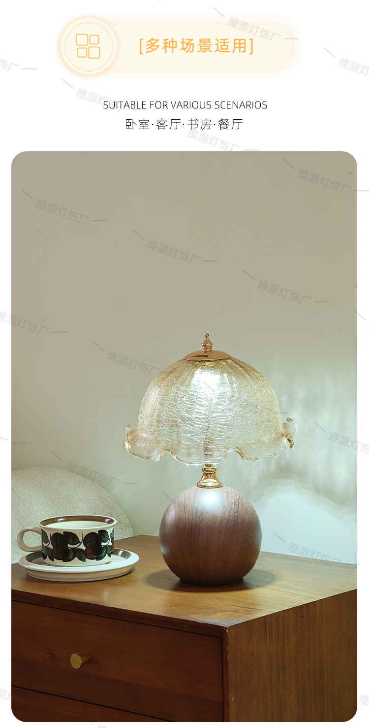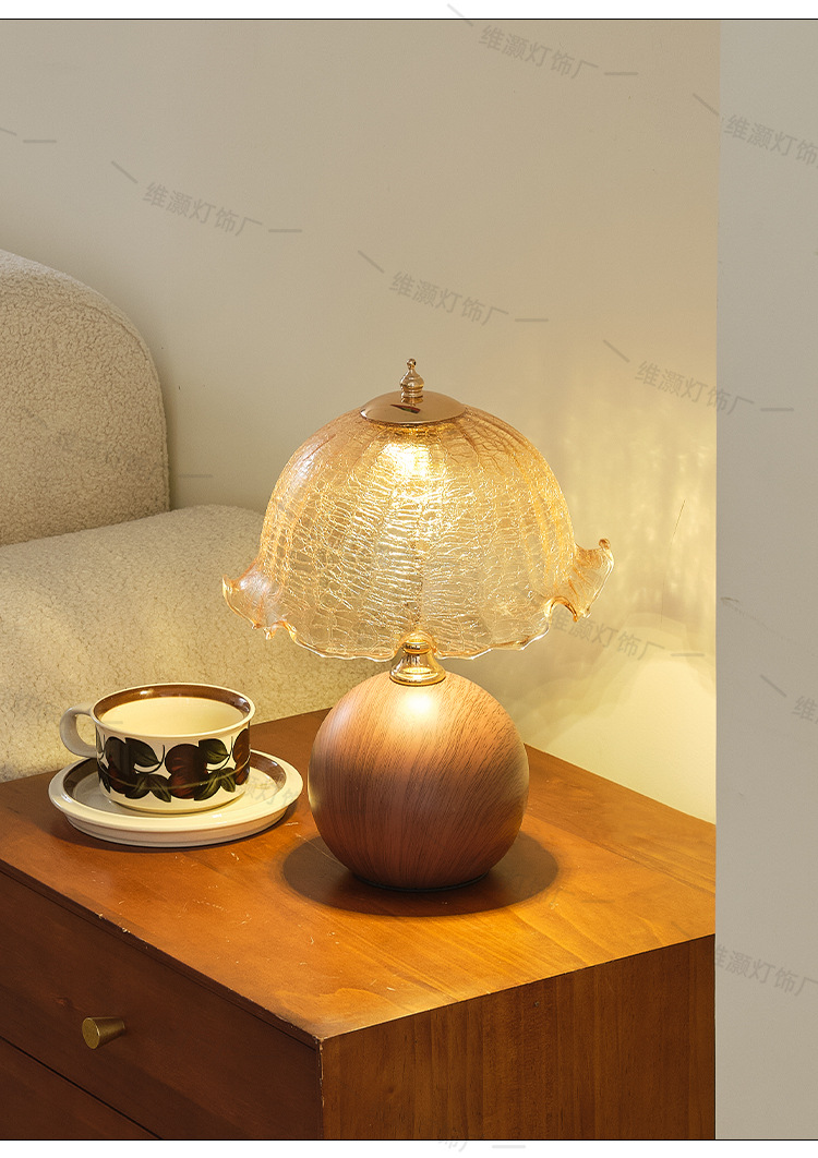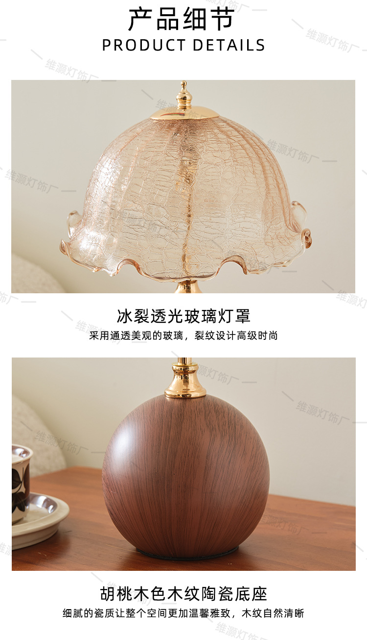 欧式复古香槟台灯卧室床头氛围灯轻奢高级感蘑菇灯陶瓷木纹床头灯