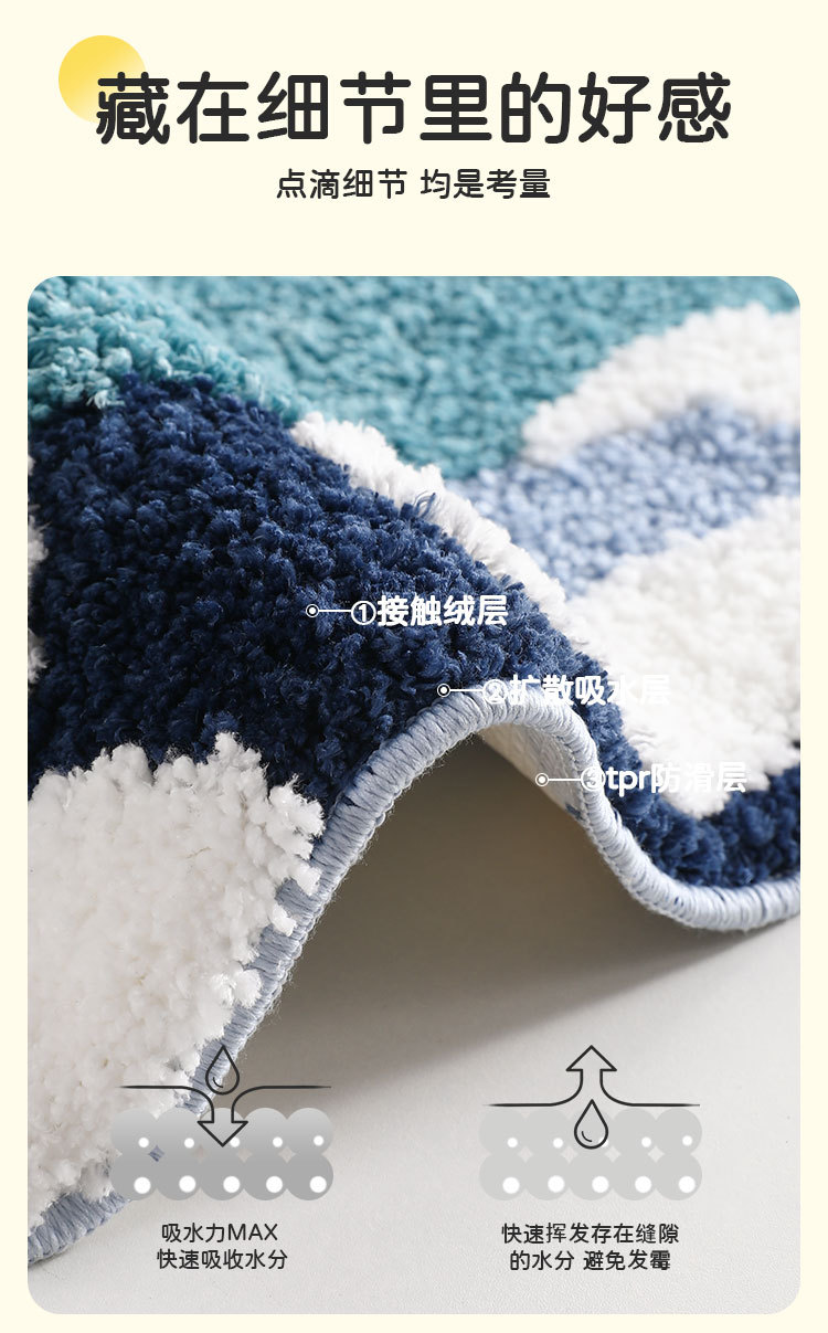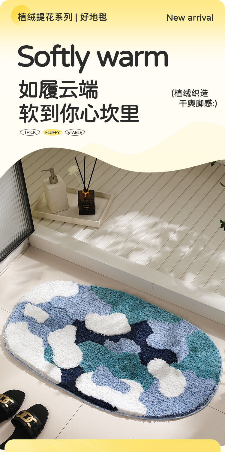 清新苔藓入户门地垫门口耐脏厕所卫生间门口防滑吸水植绒地毯玄关