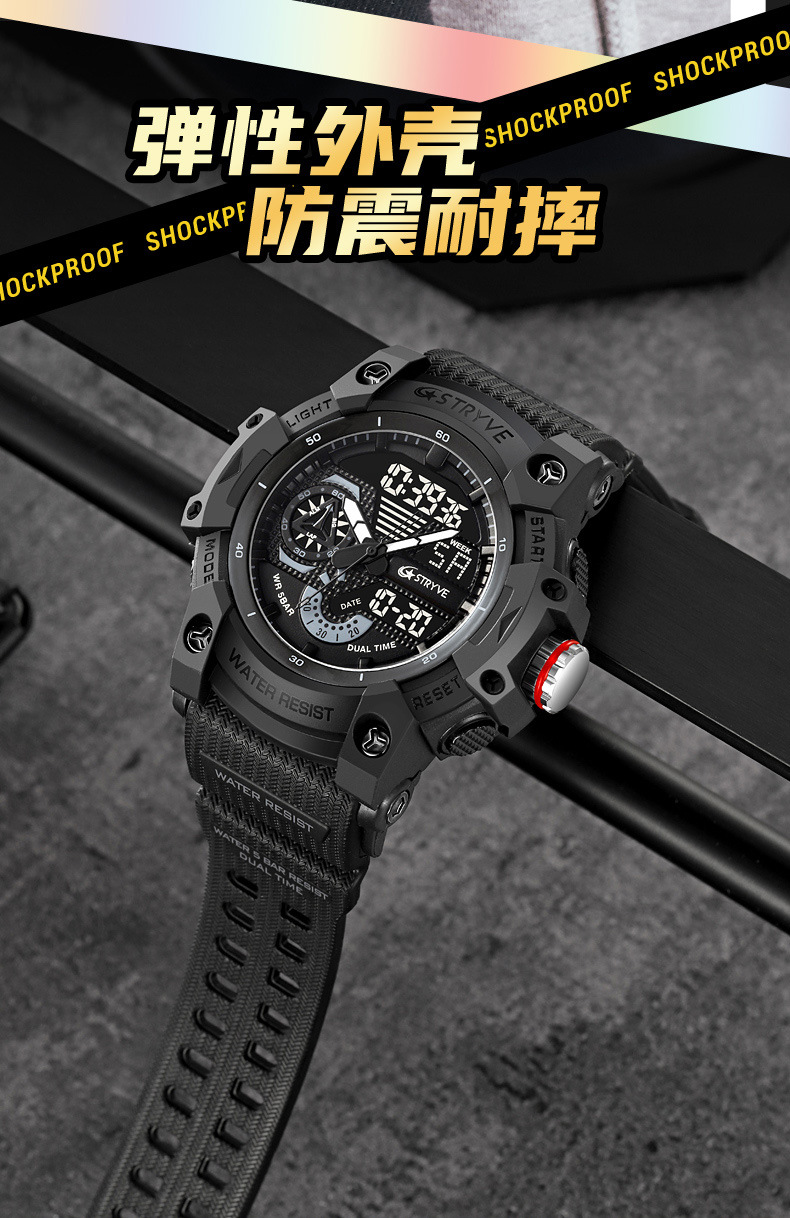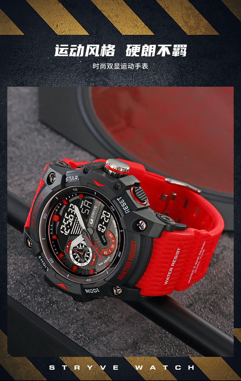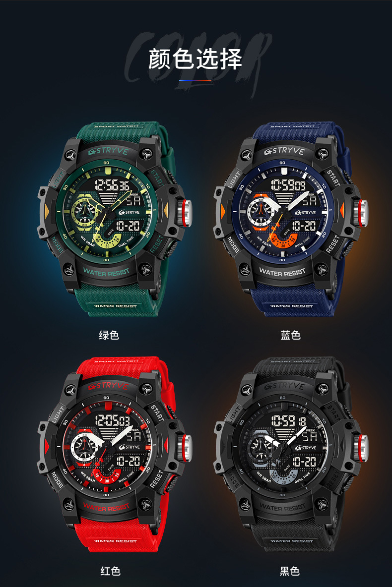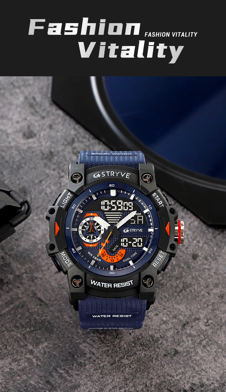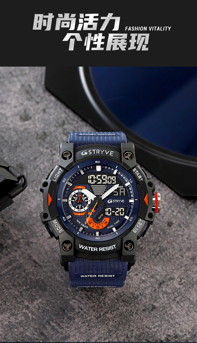 STRYVE男士时尚元素防水运动手表双显夜光电子多功能学生表S8029