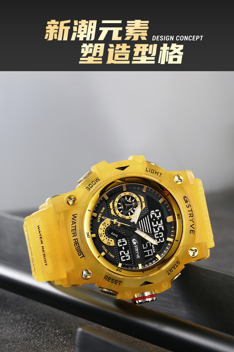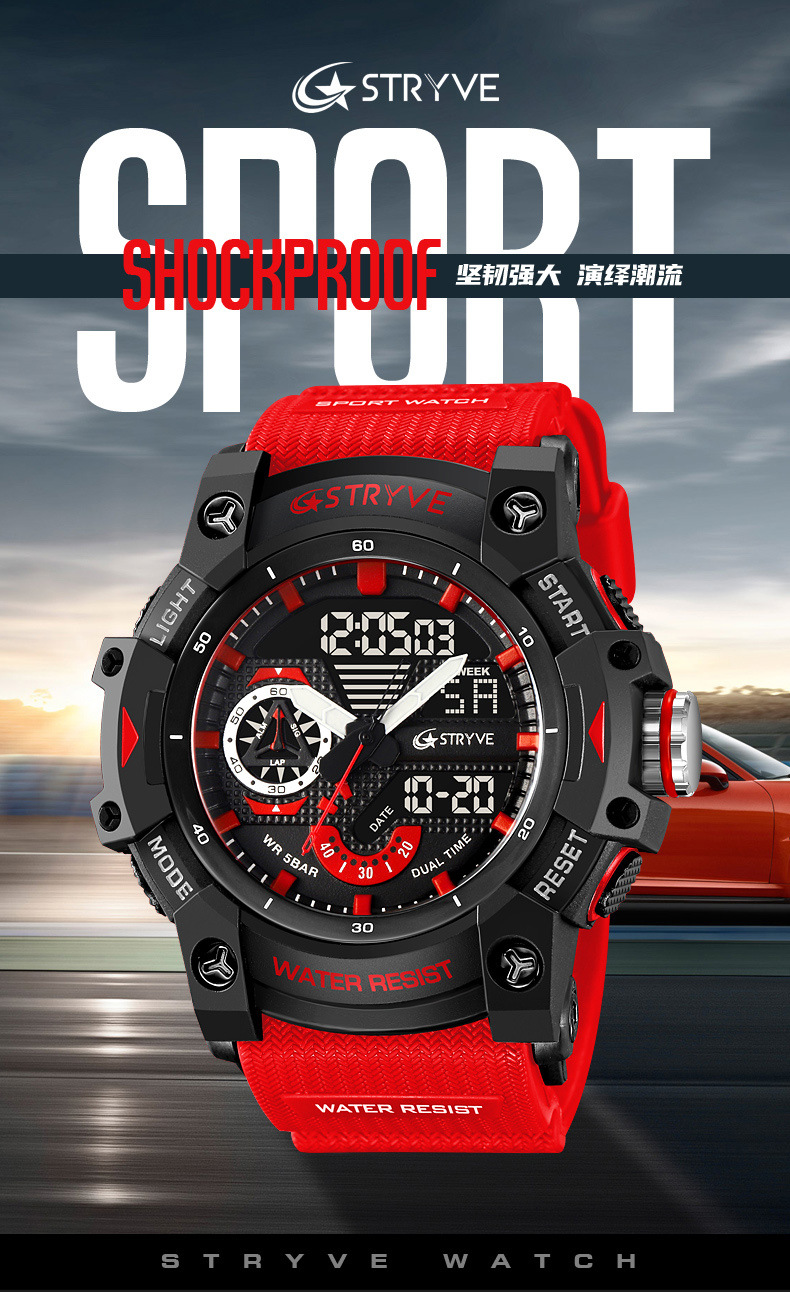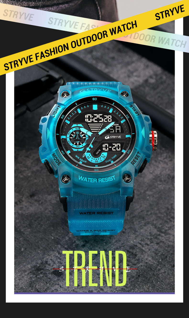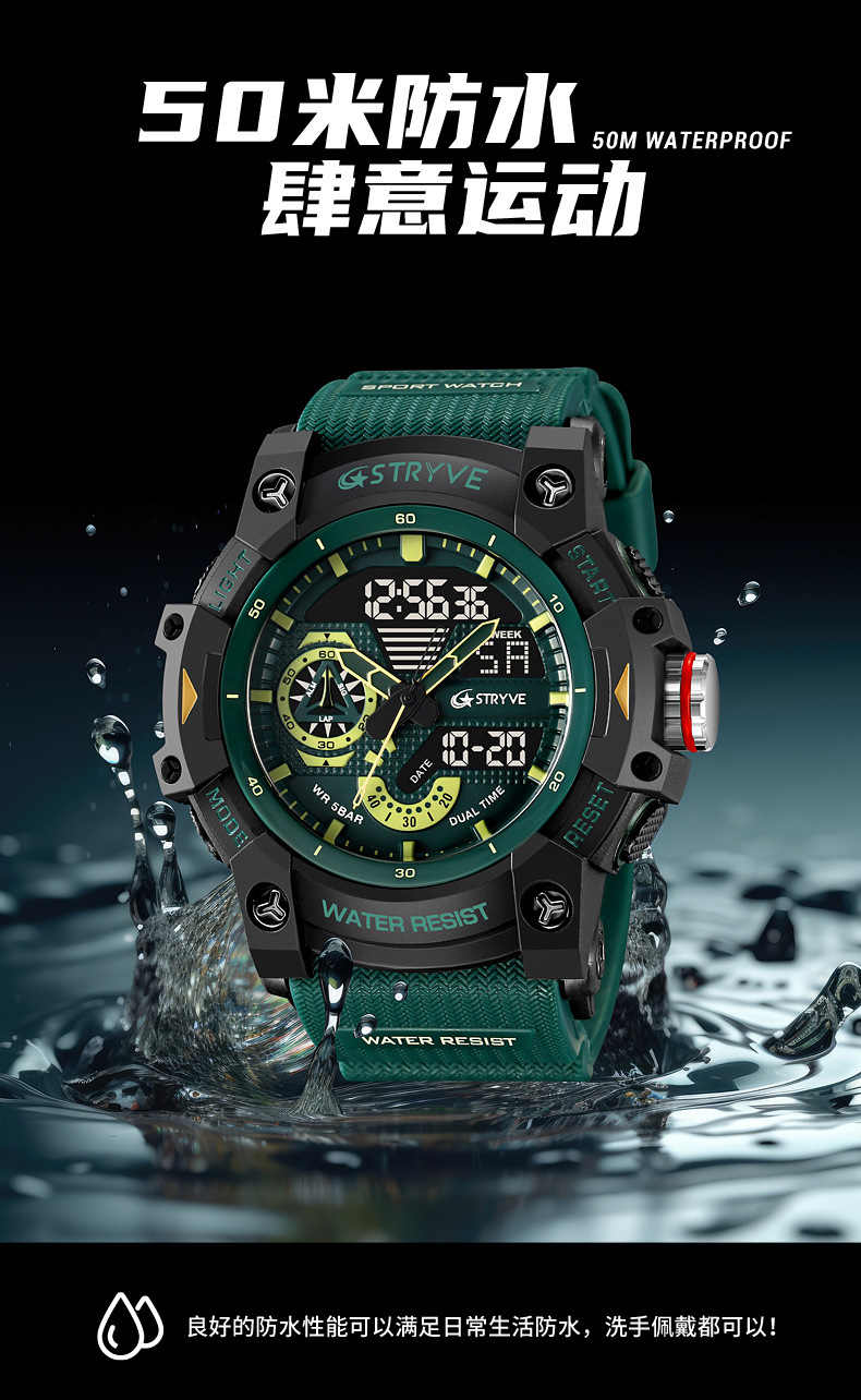 STRYVE男士时尚元素防水运动手表双显夜光电子多功能学生表S8029