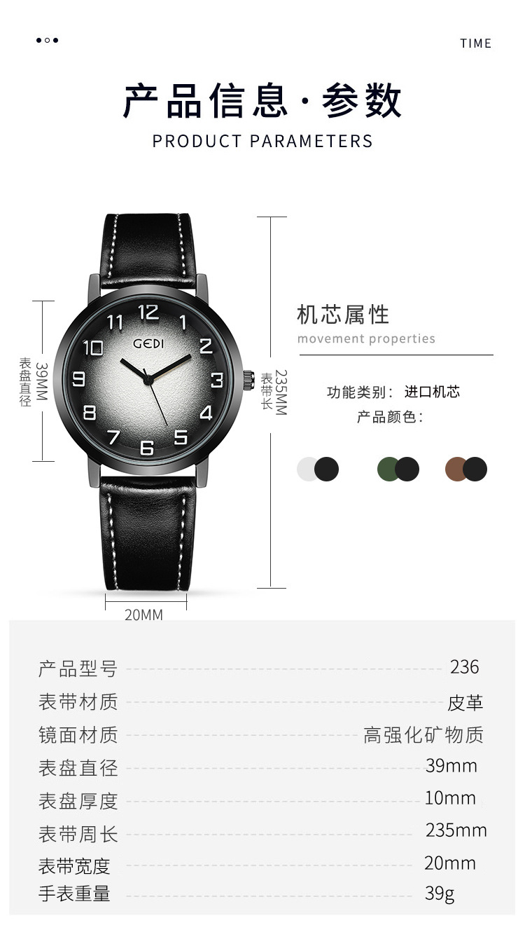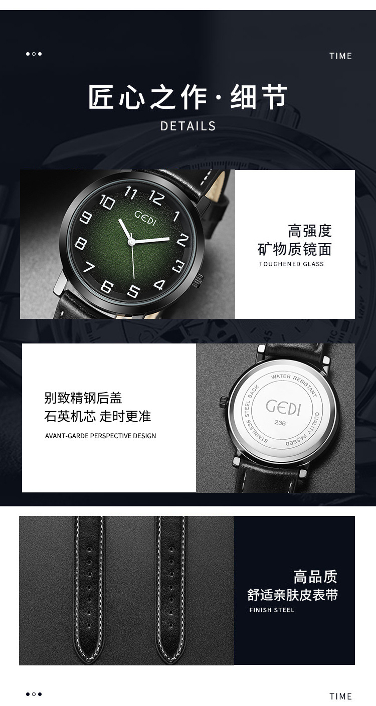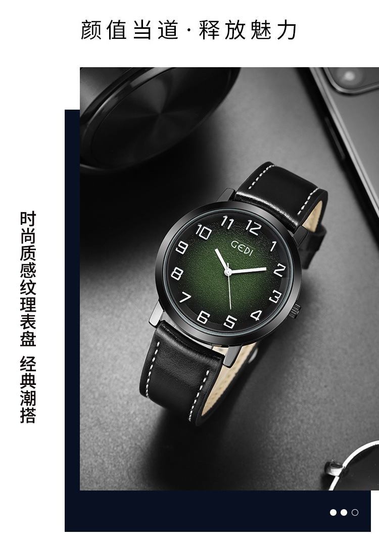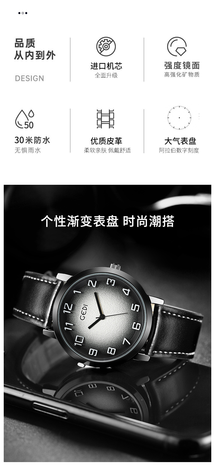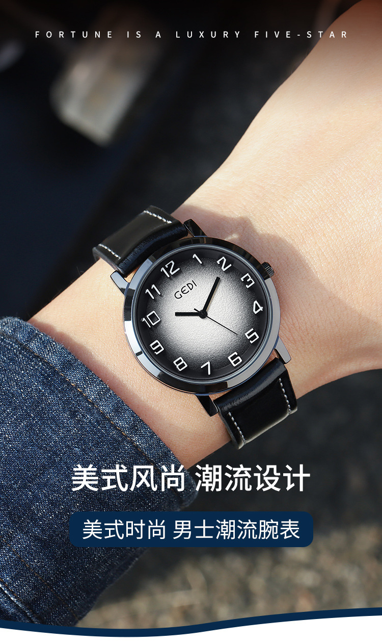 歌迪gedi小众高级感男士复古风皮带石英手表