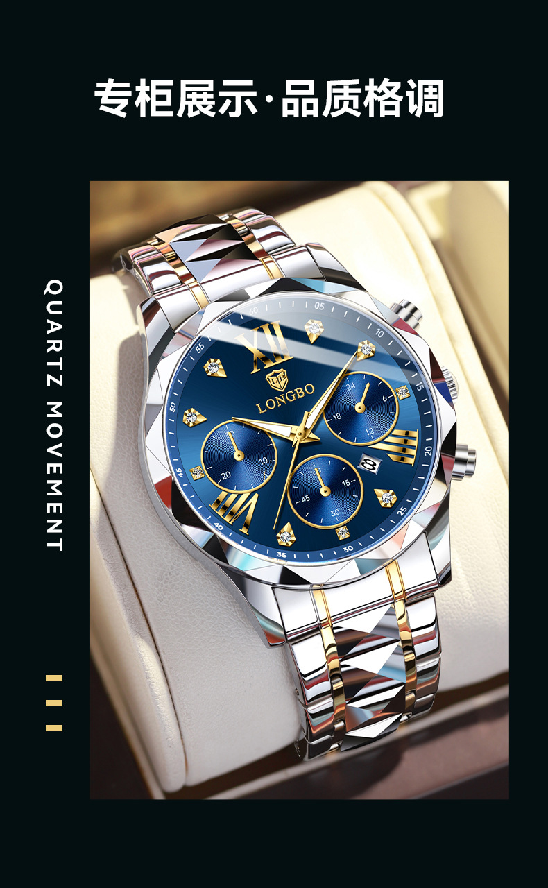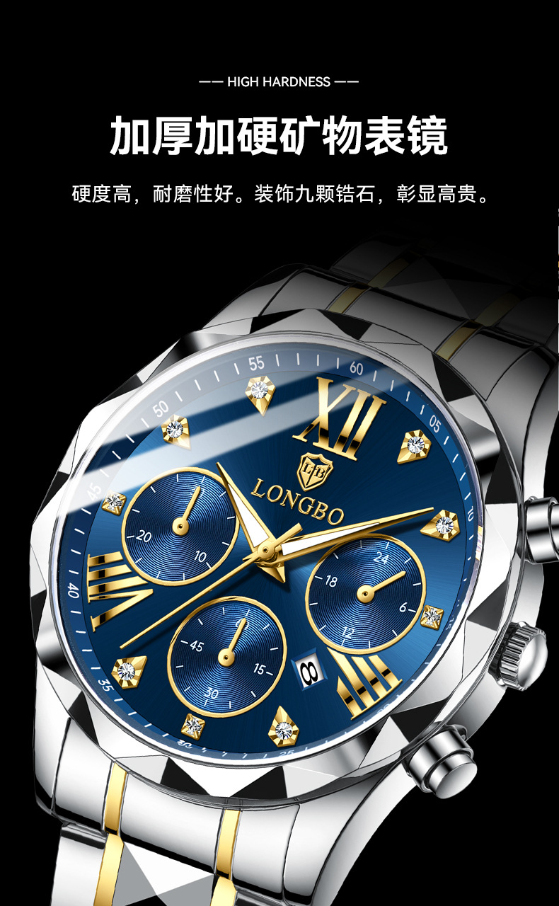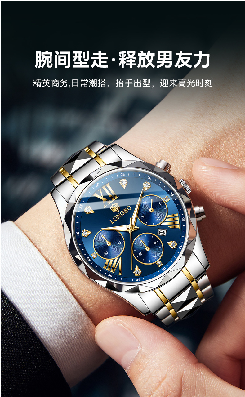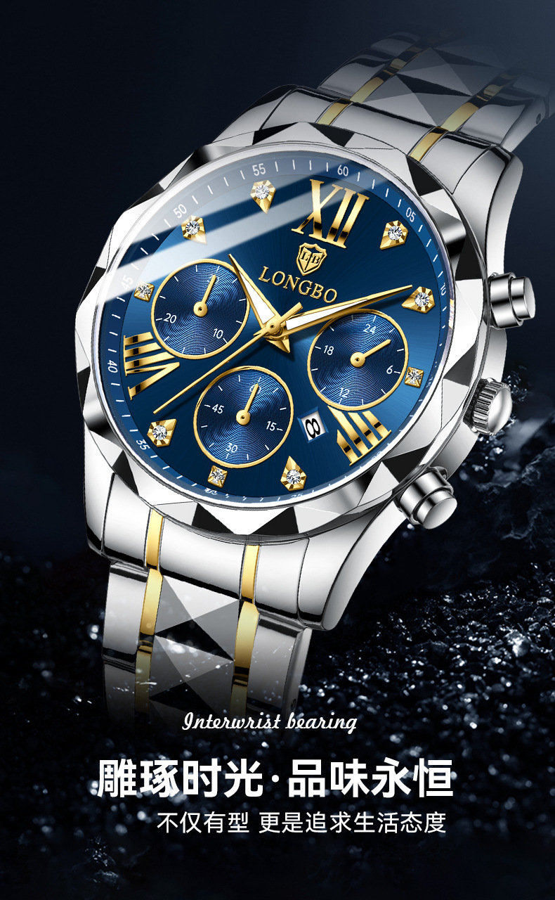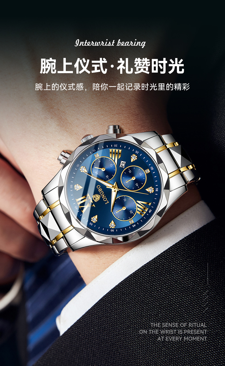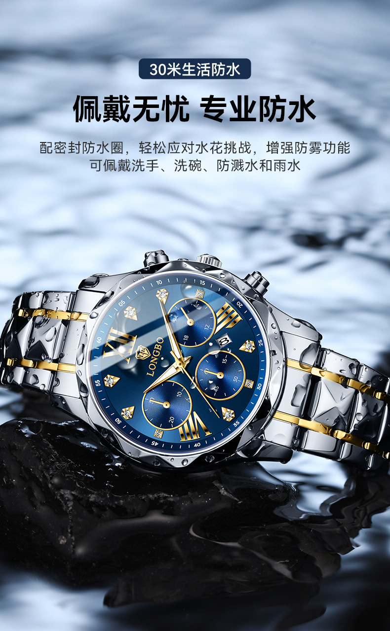 龙波手表男士商务防水手表夜光石英表跨境热销非机械表批发watch
