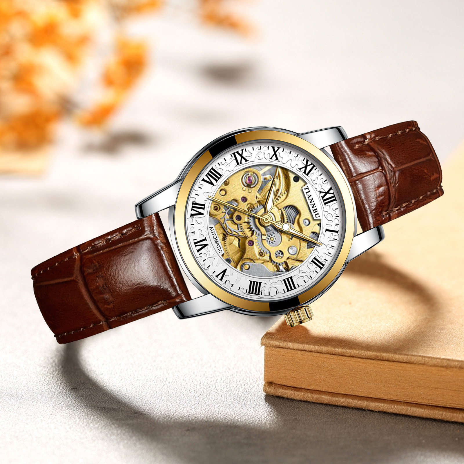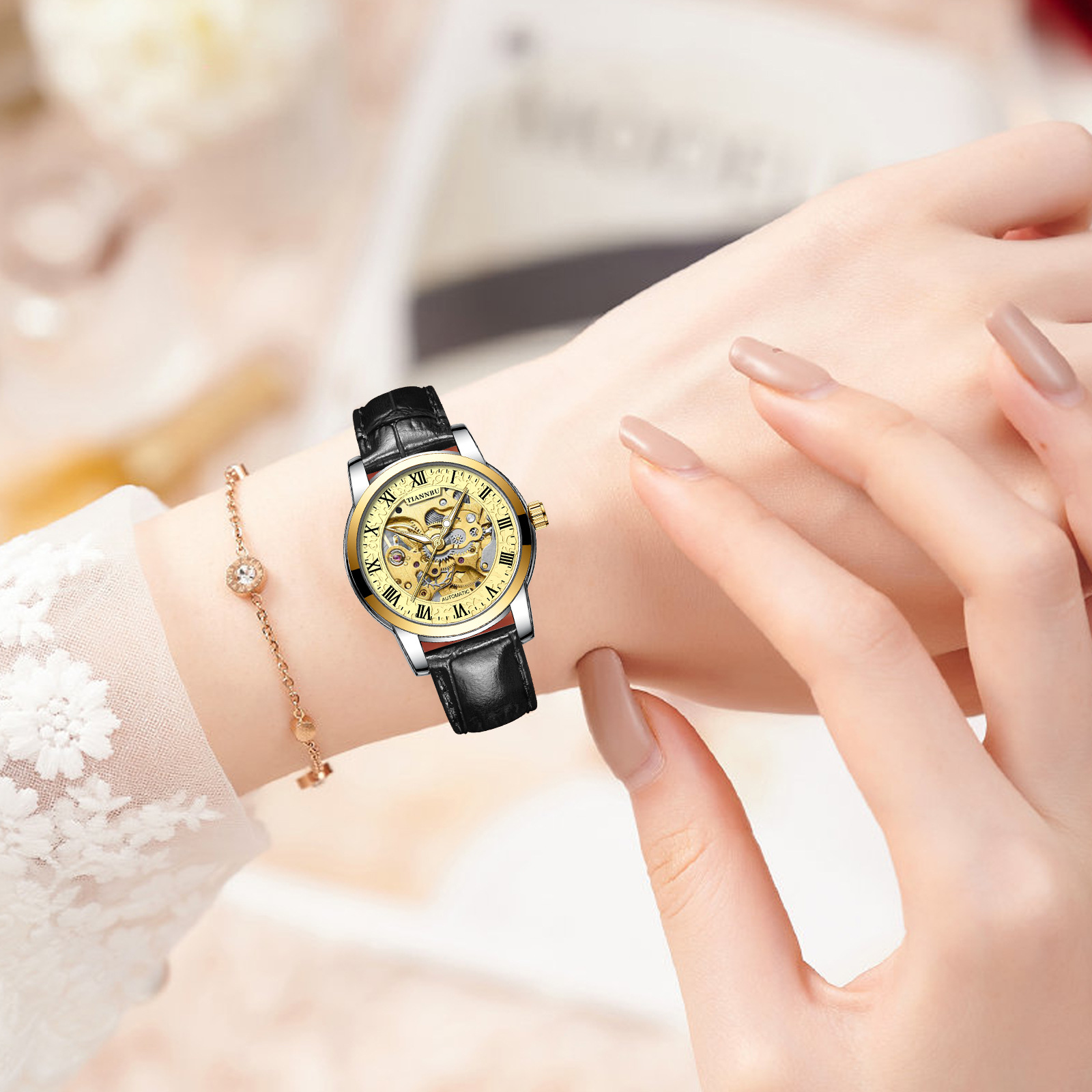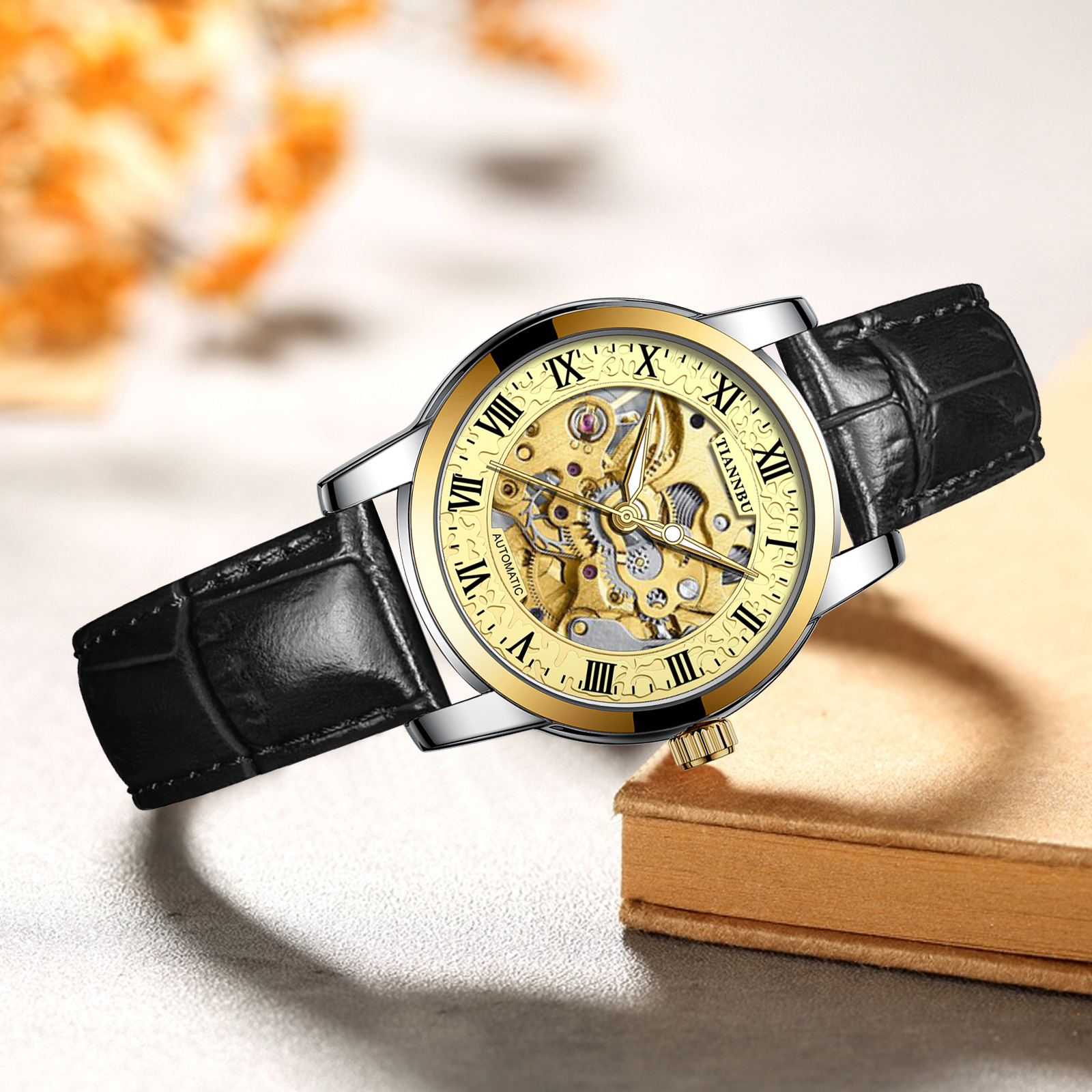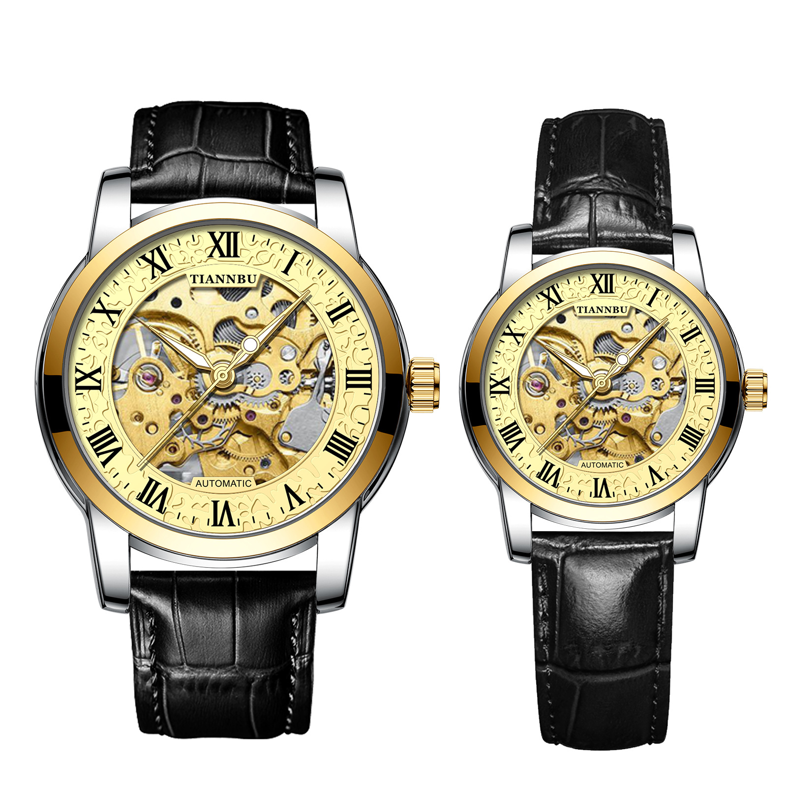 天博陀飞轮情侣手表一对防水机械表全自动镂空潮夜光品牌商务腕表