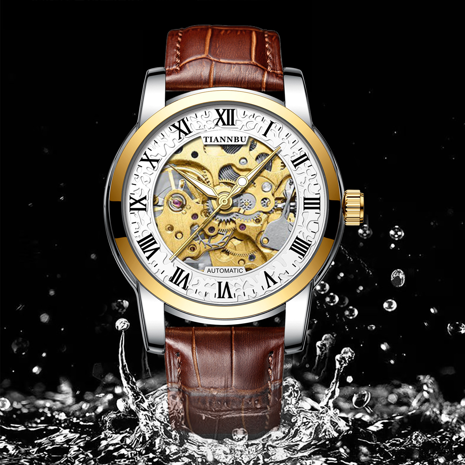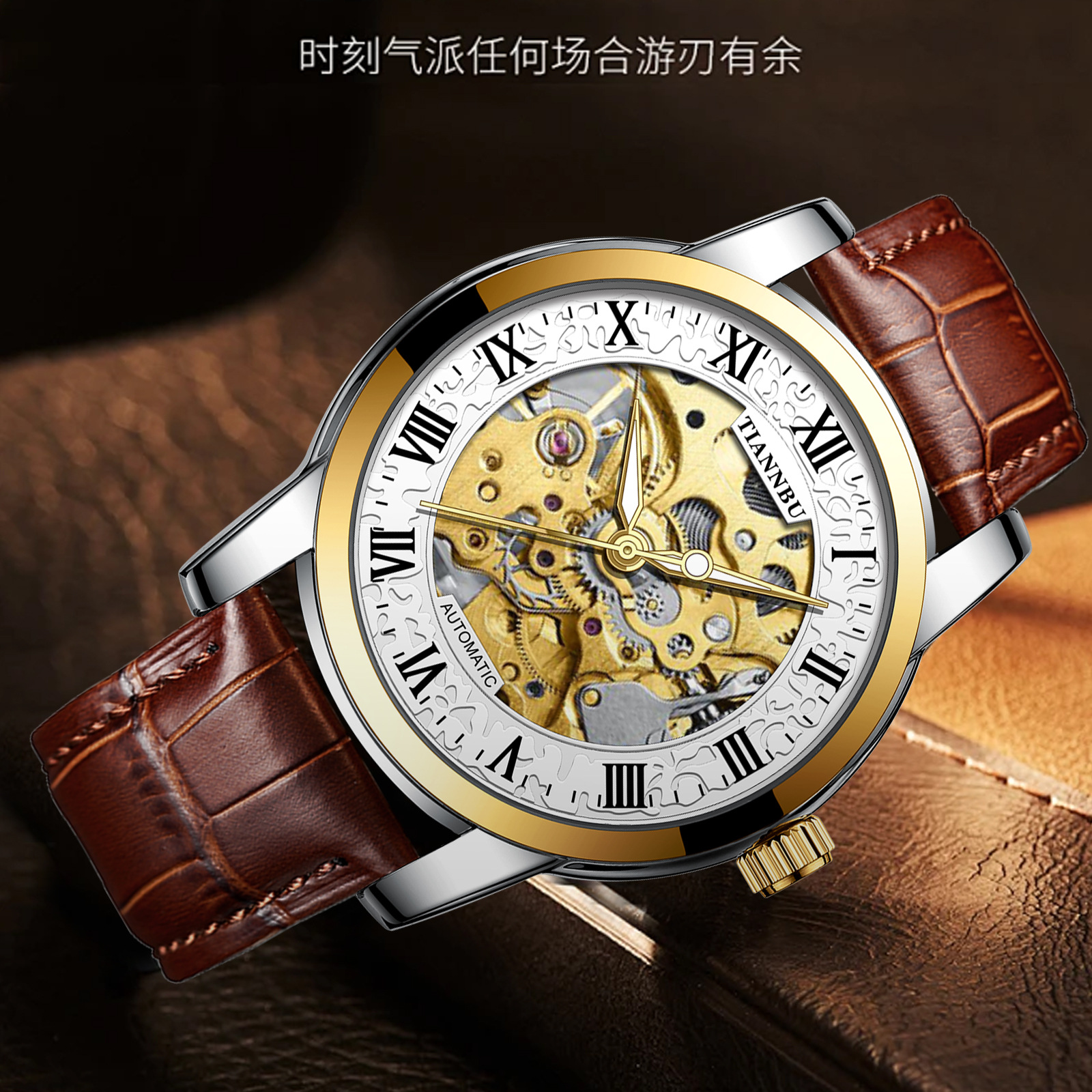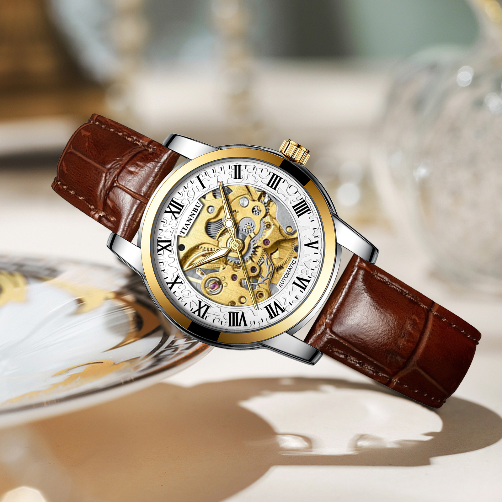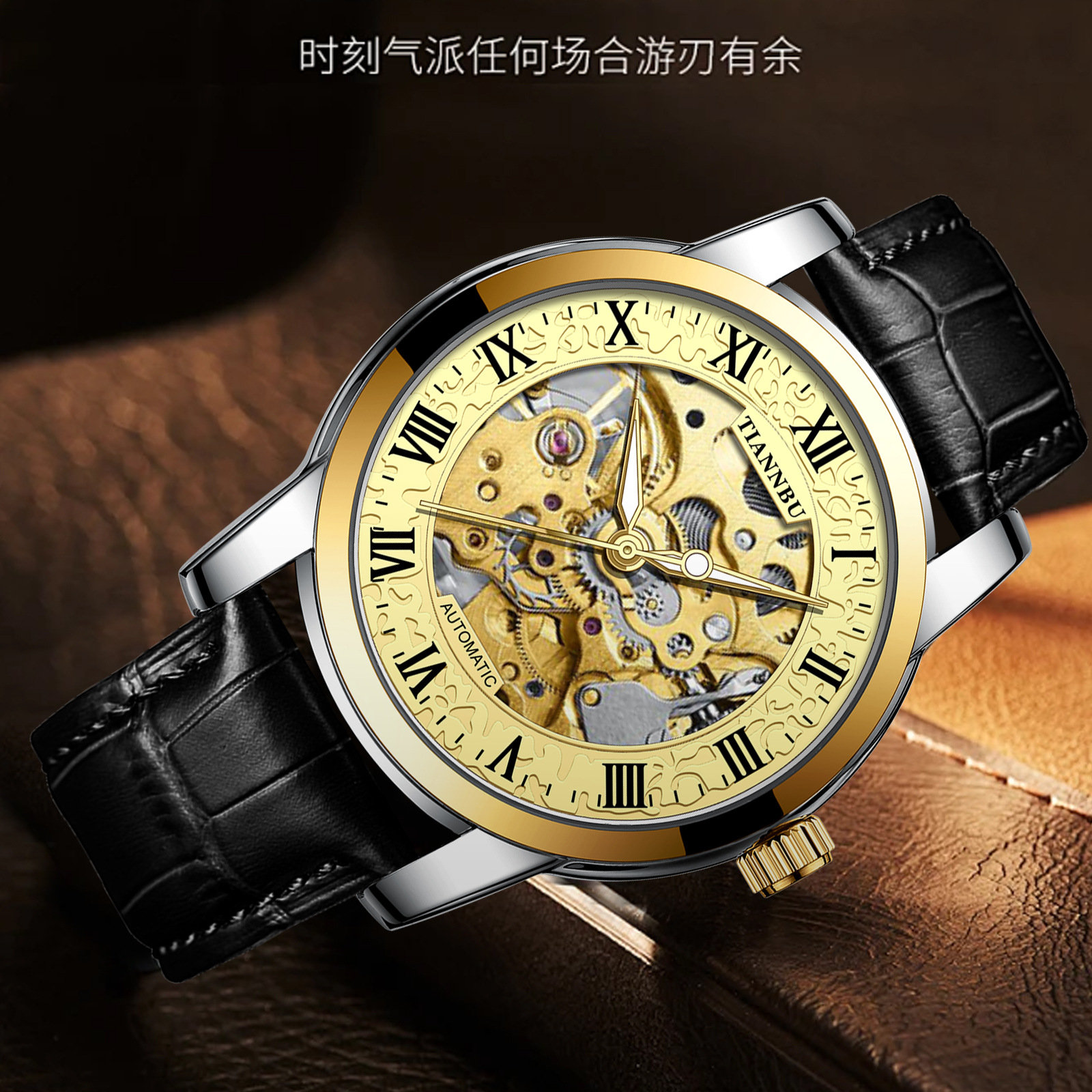 天博陀飞轮情侣手表一对防水机械表全自动镂空潮夜光品牌商务腕表