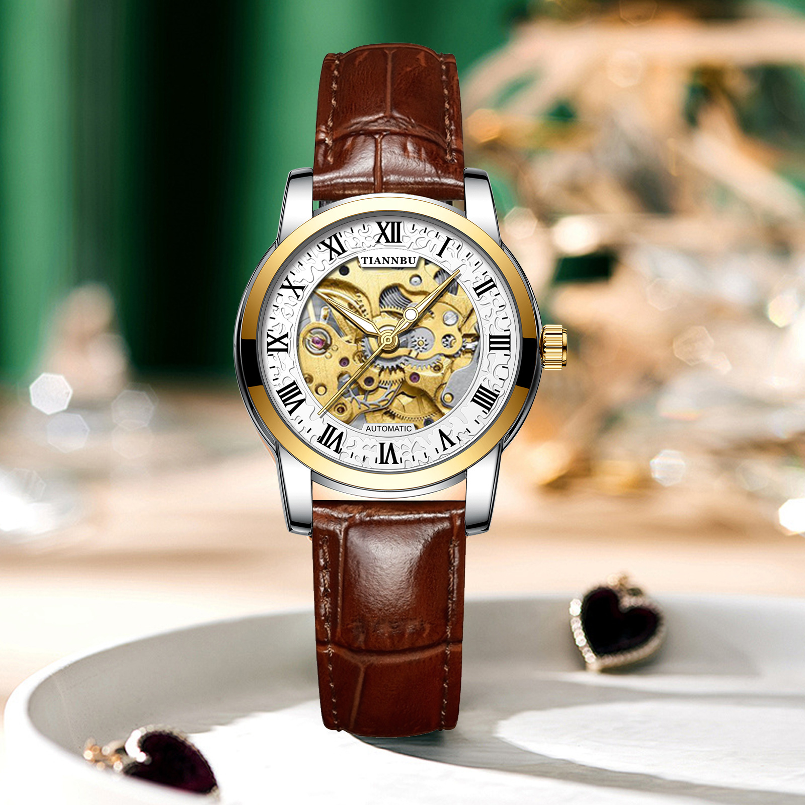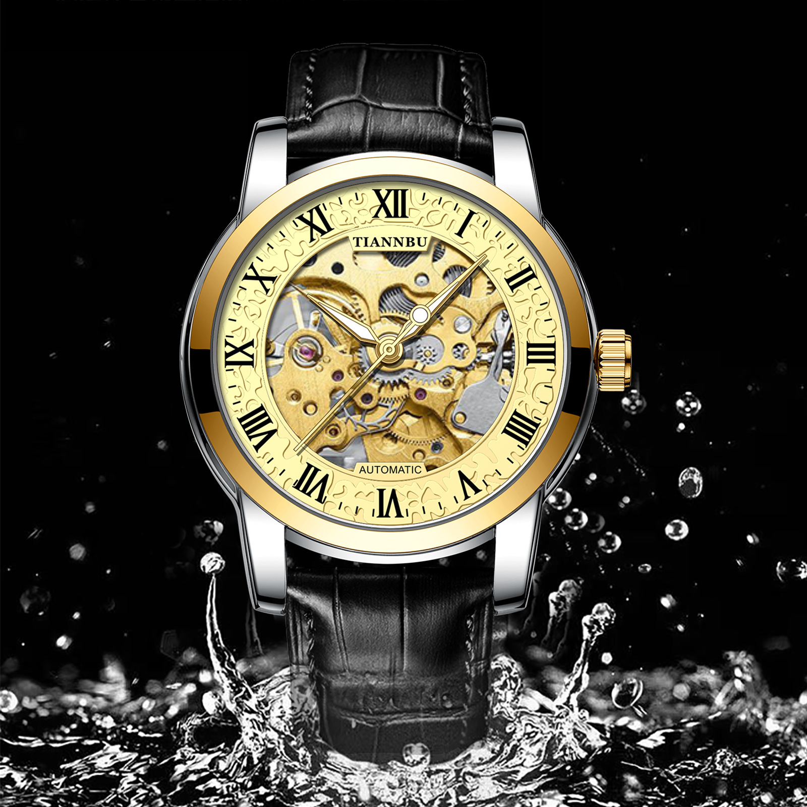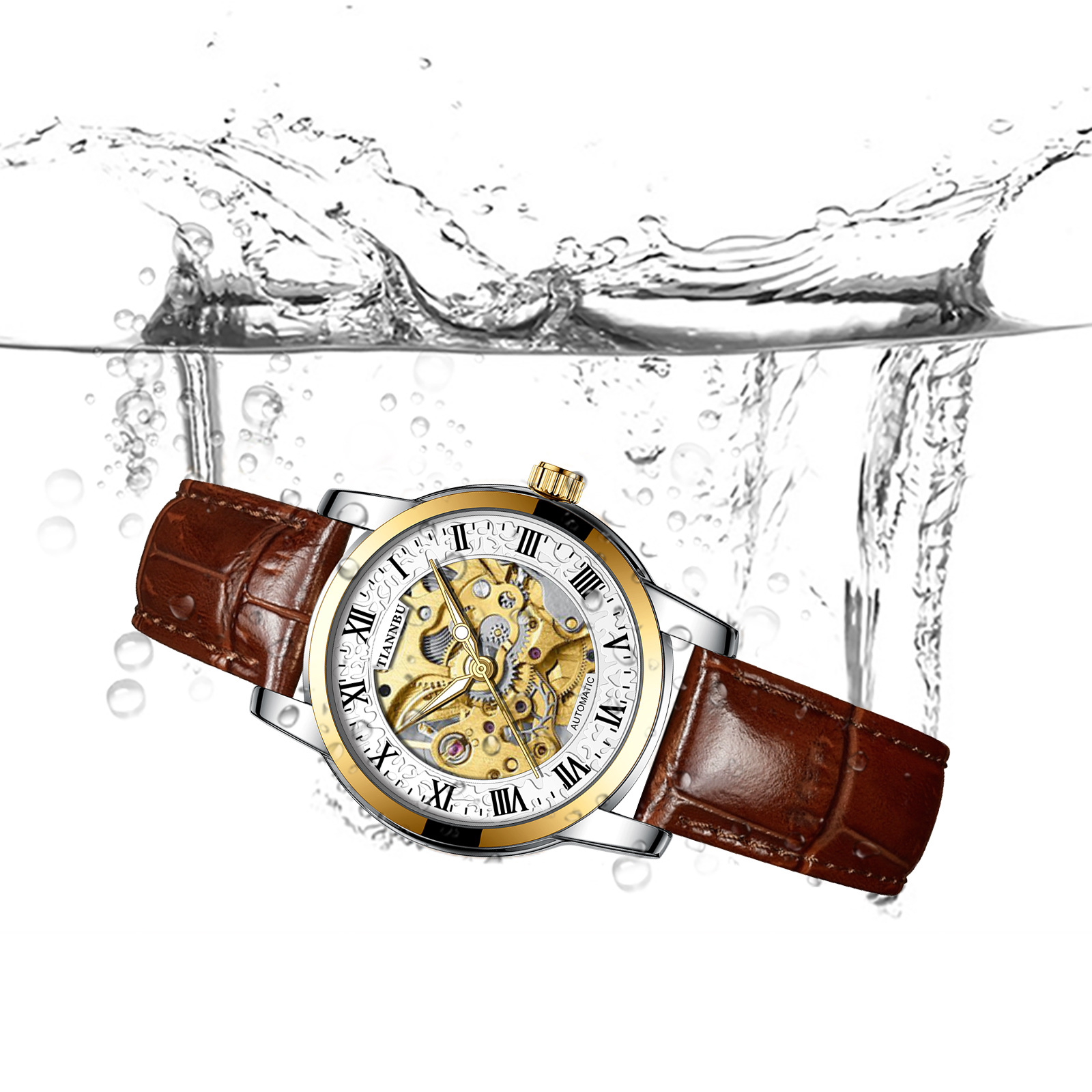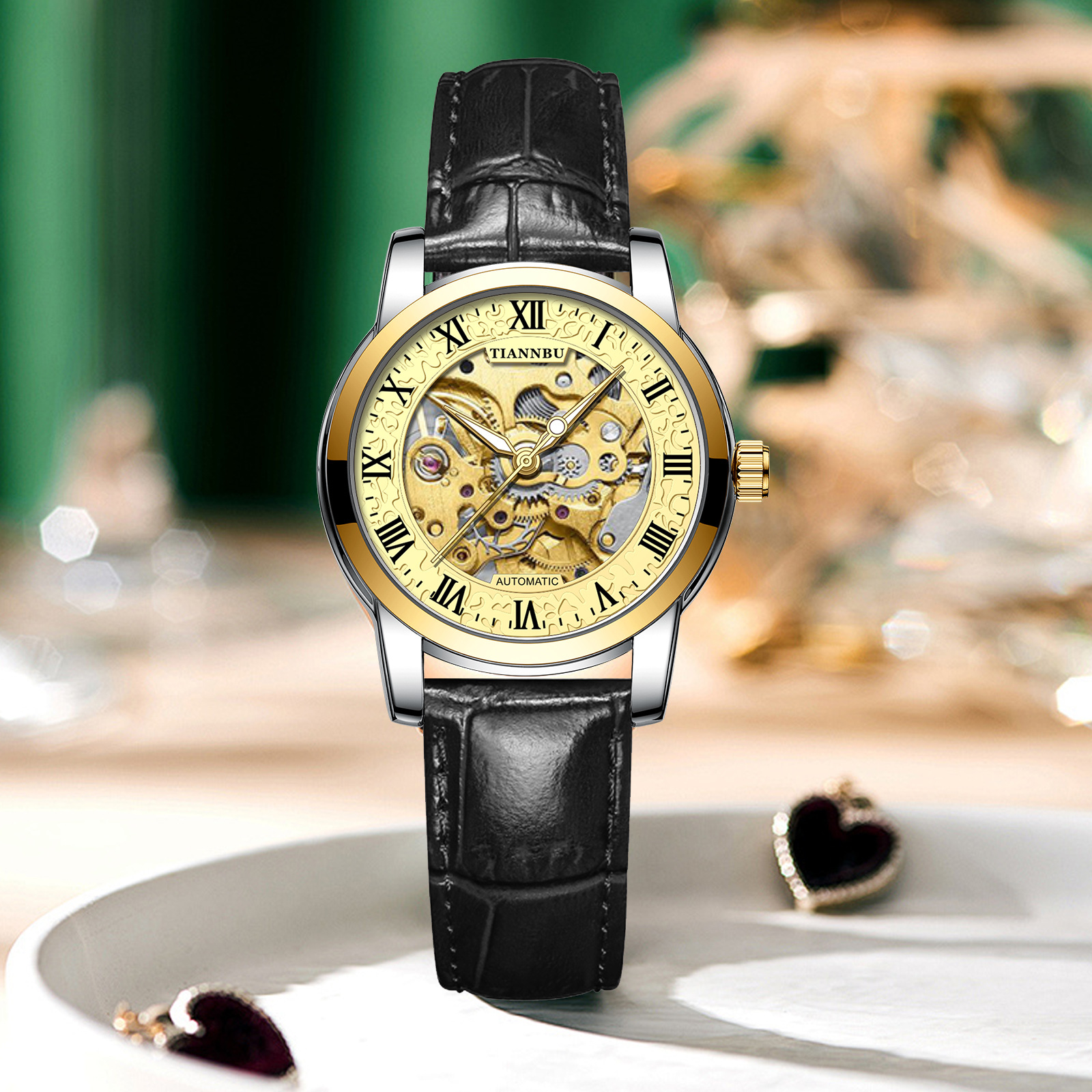 天博陀飞轮情侣手表一对防水机械表全自动镂空潮夜光品牌商务腕表