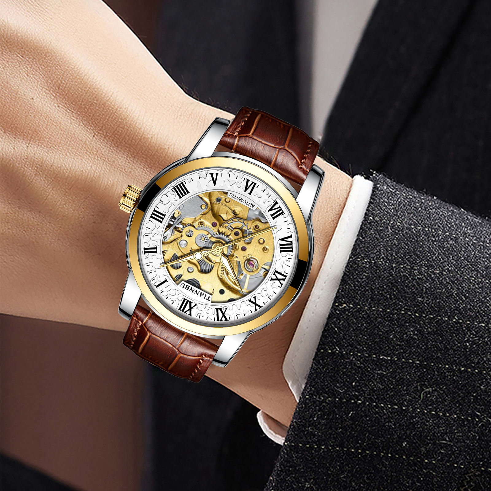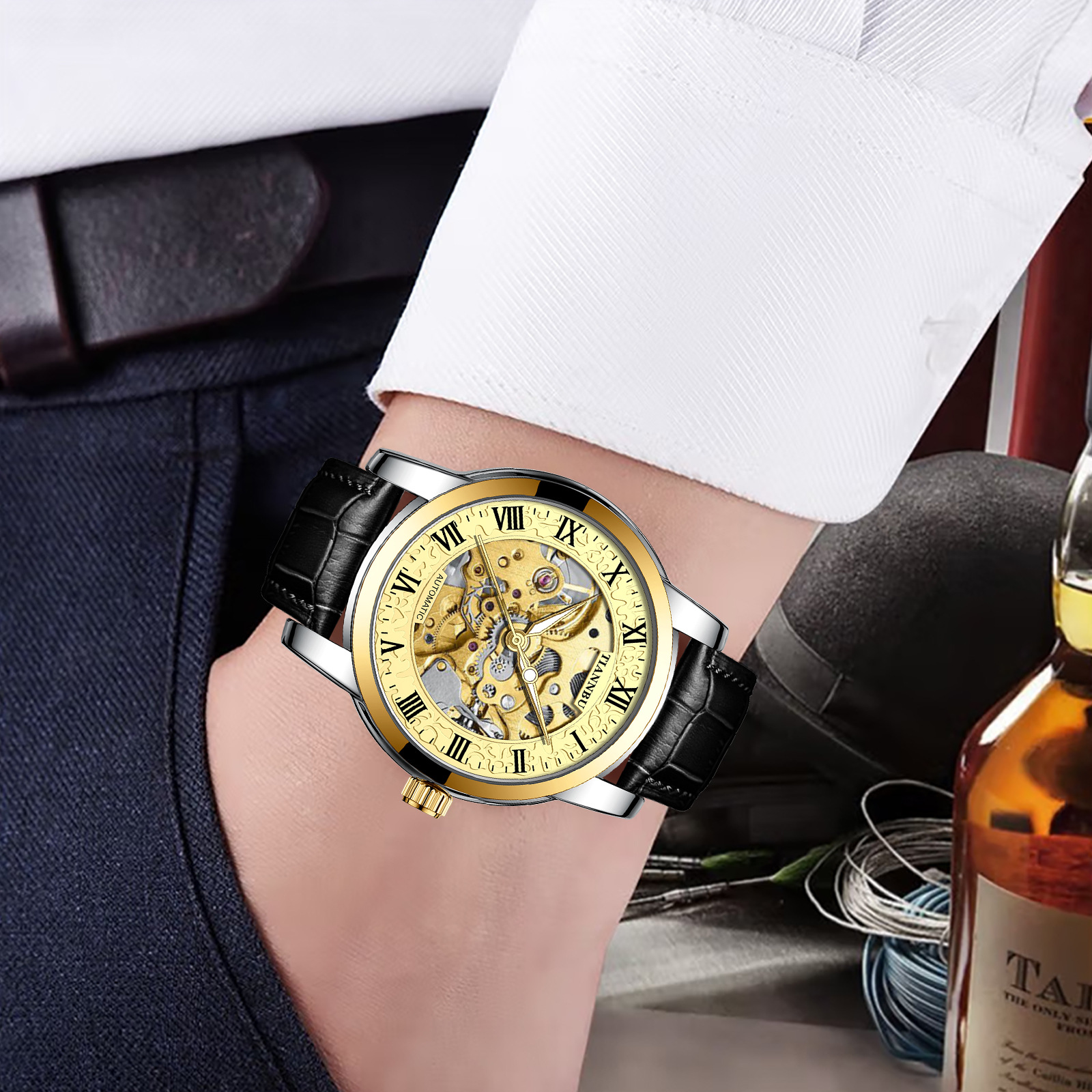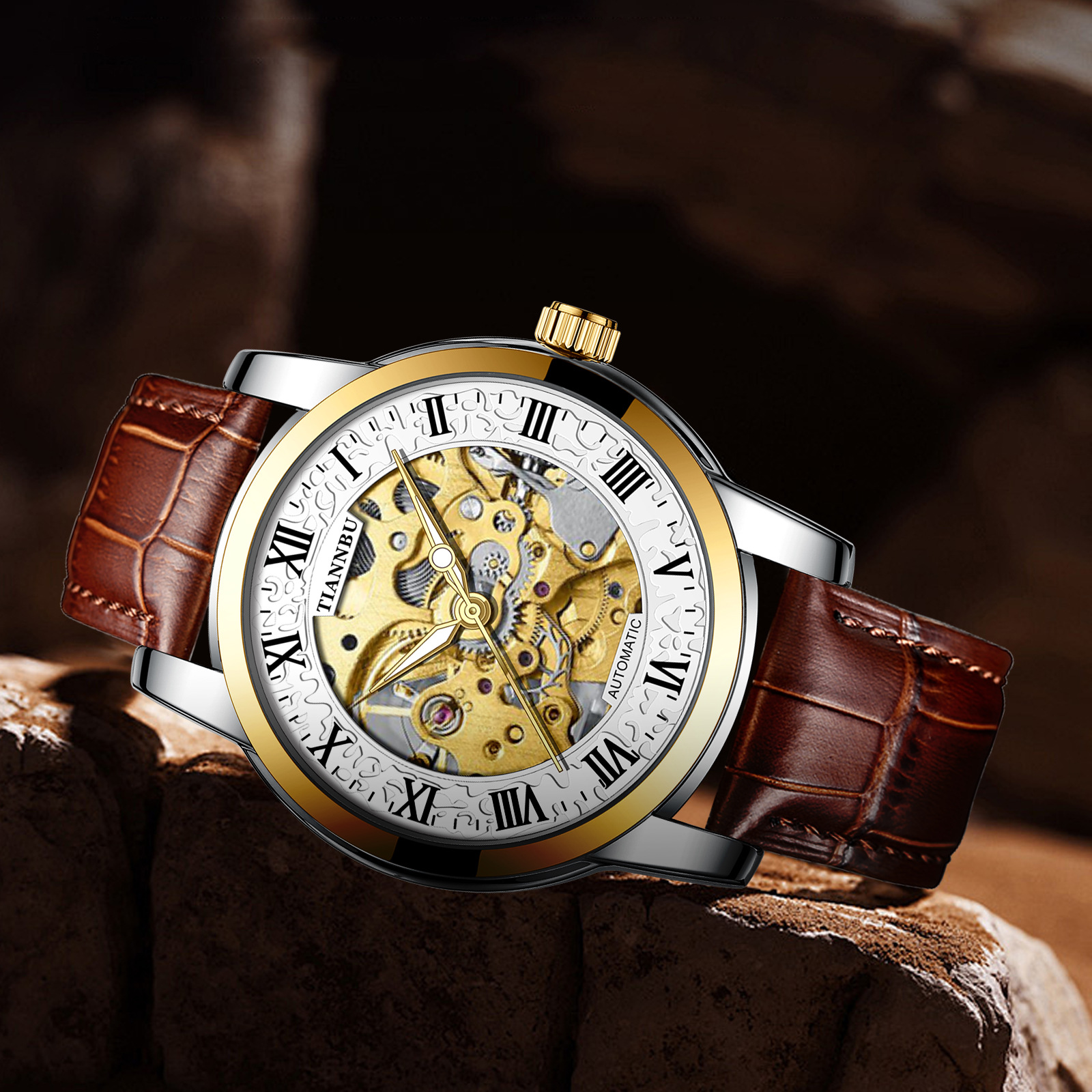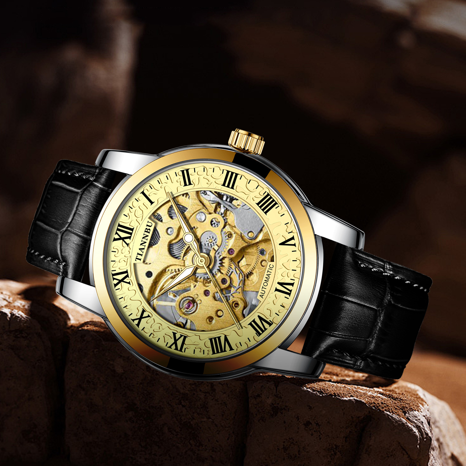 天博陀飞轮情侣手表一对防水机械表全自动镂空潮夜光品牌商务腕表