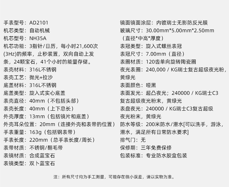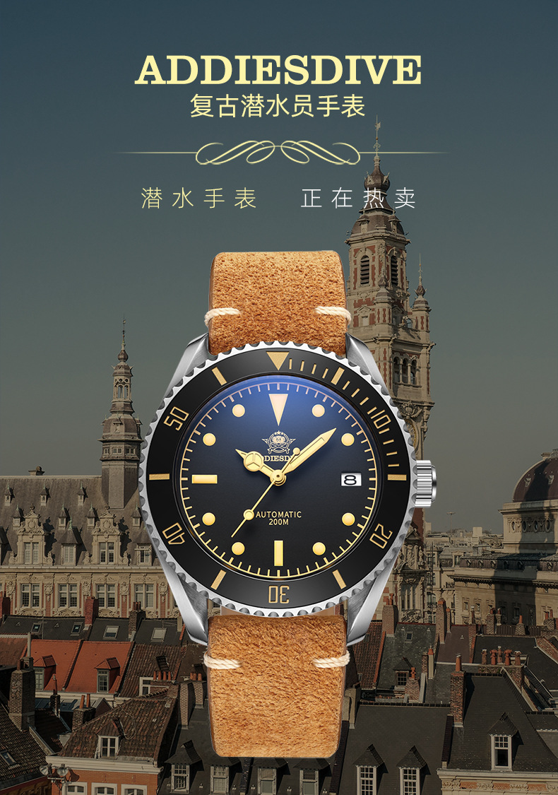 addiesdiveAD2101手表机械表女士全自动情侣夜光腕表高端防水轻奢